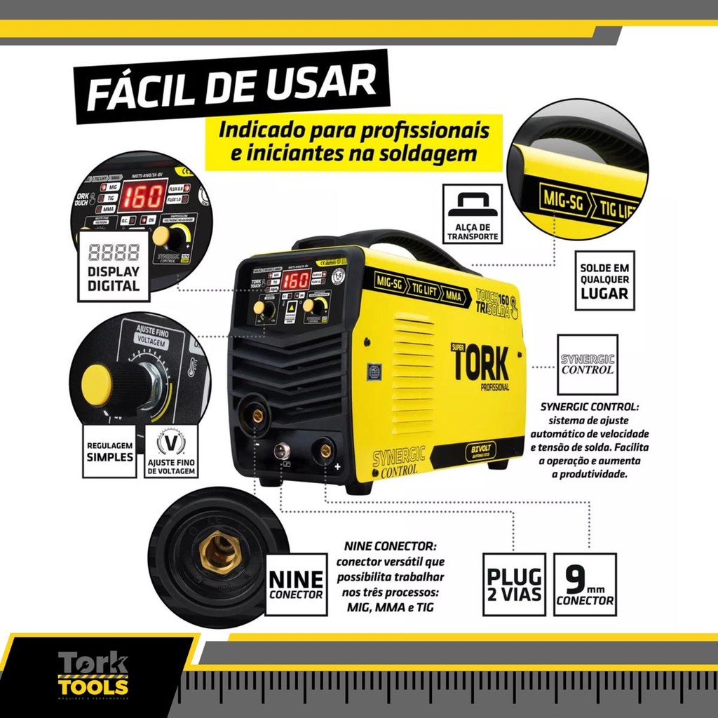 Maquina Solda Inversora Mig 160a Sem Gás Tig Mma Tork Soldas - Sem arame