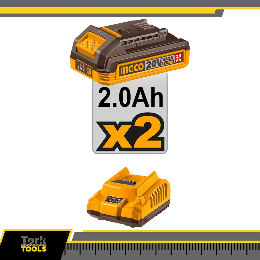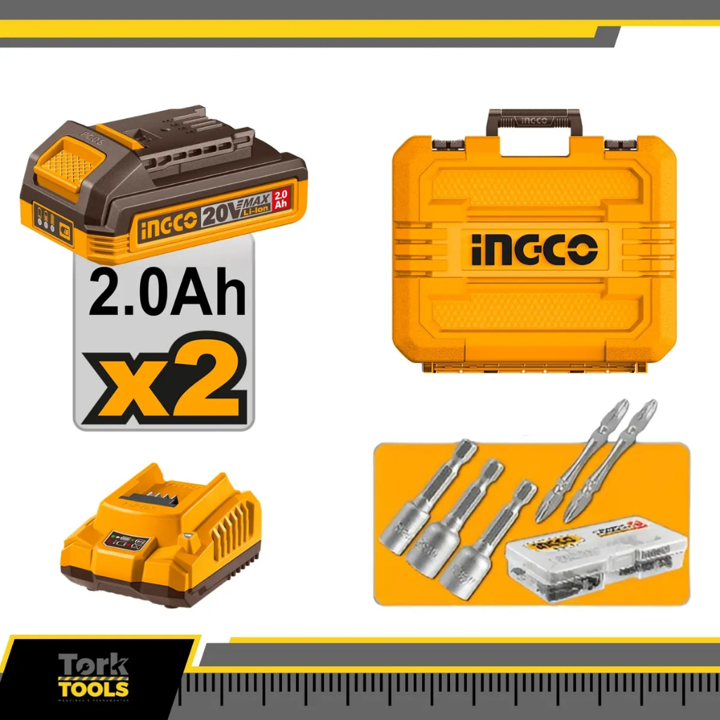 Kit 2 Parafusadeira Furadeira Impacto 20V + 2x Baterias 1/4 Brushless - Ingco Brasil