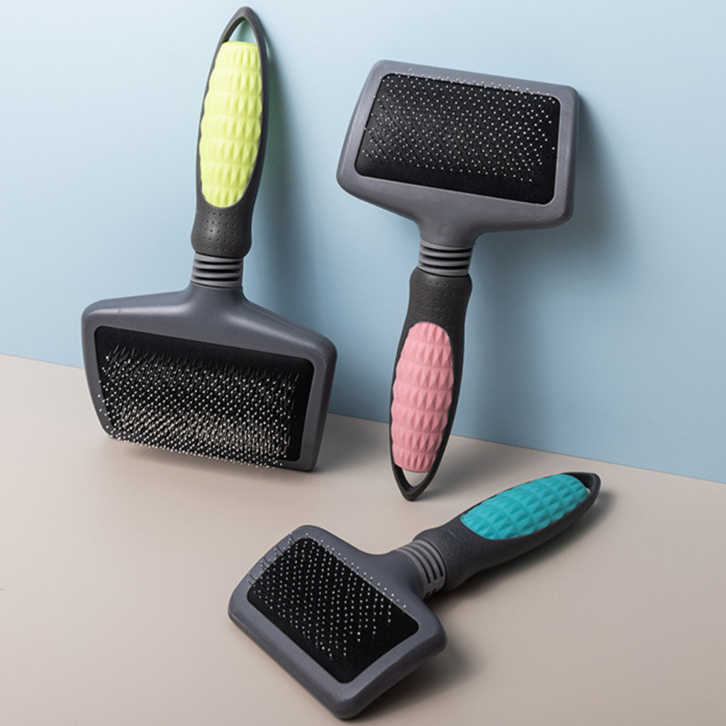 Escova Rasqueadeira Curva para Pet Para Cães e Gatos Cerdas Metálicas Ideal para a Escovação Diária.