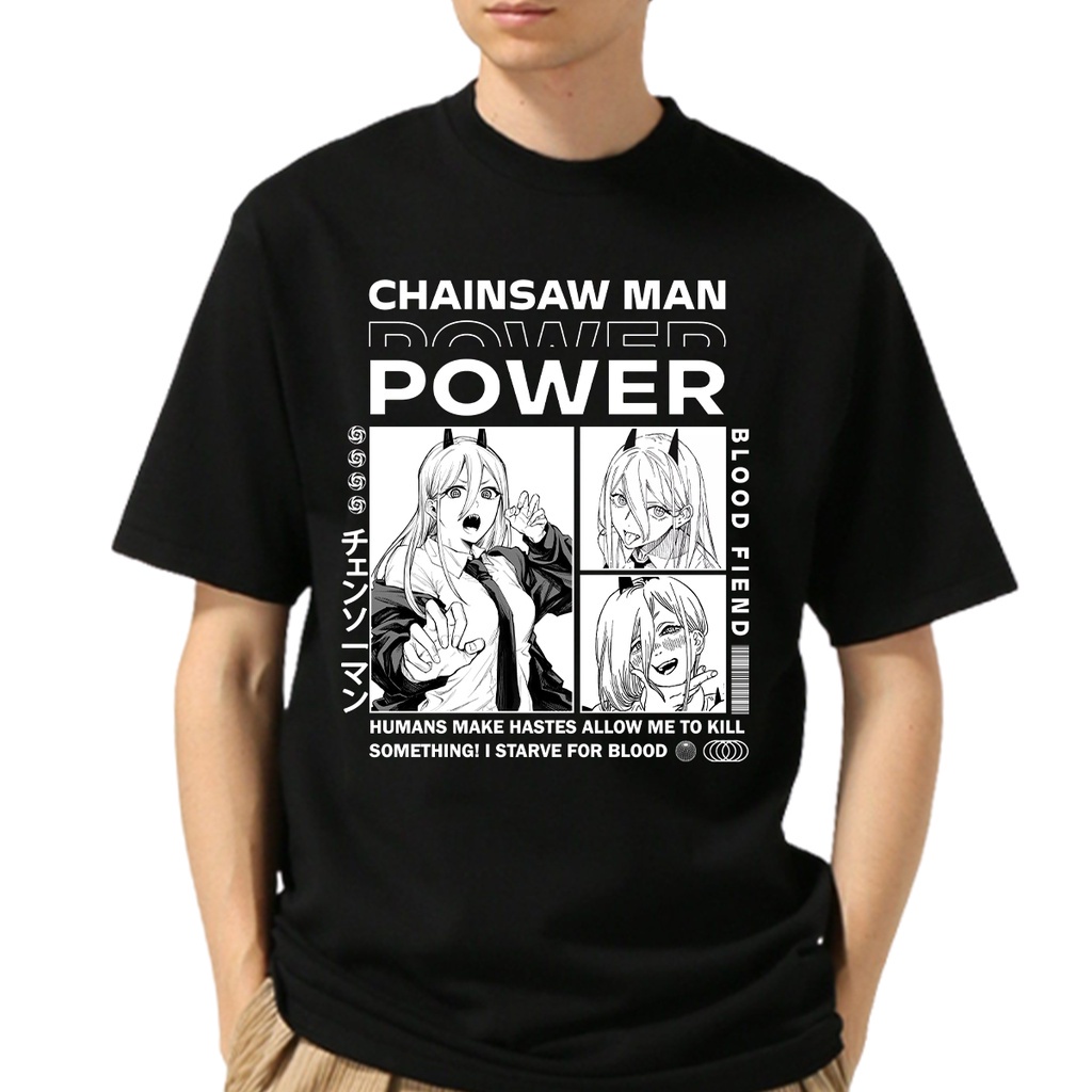Camiseta Basica Camisa Chainsaw Man Power Blood Fiend Makima Anime Unissex Malha Premium