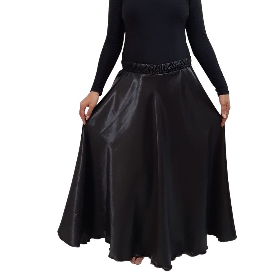 Saia Preta em Cetim com 4 metros de roda dança Umbanda Candomblé cores variadas