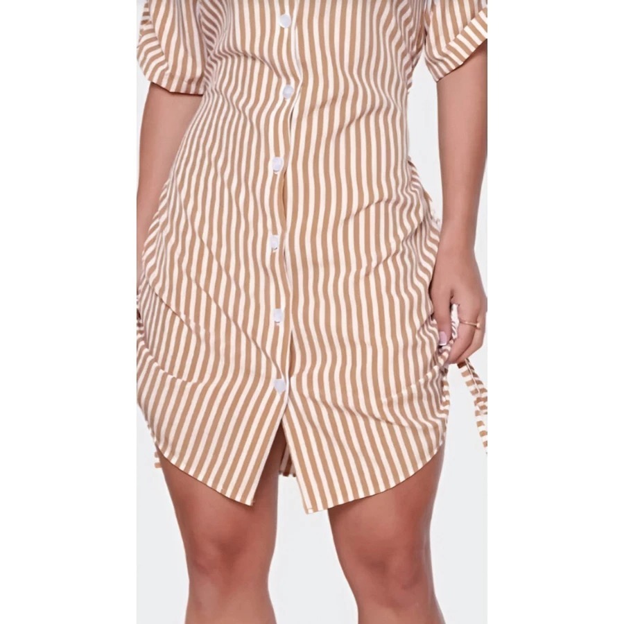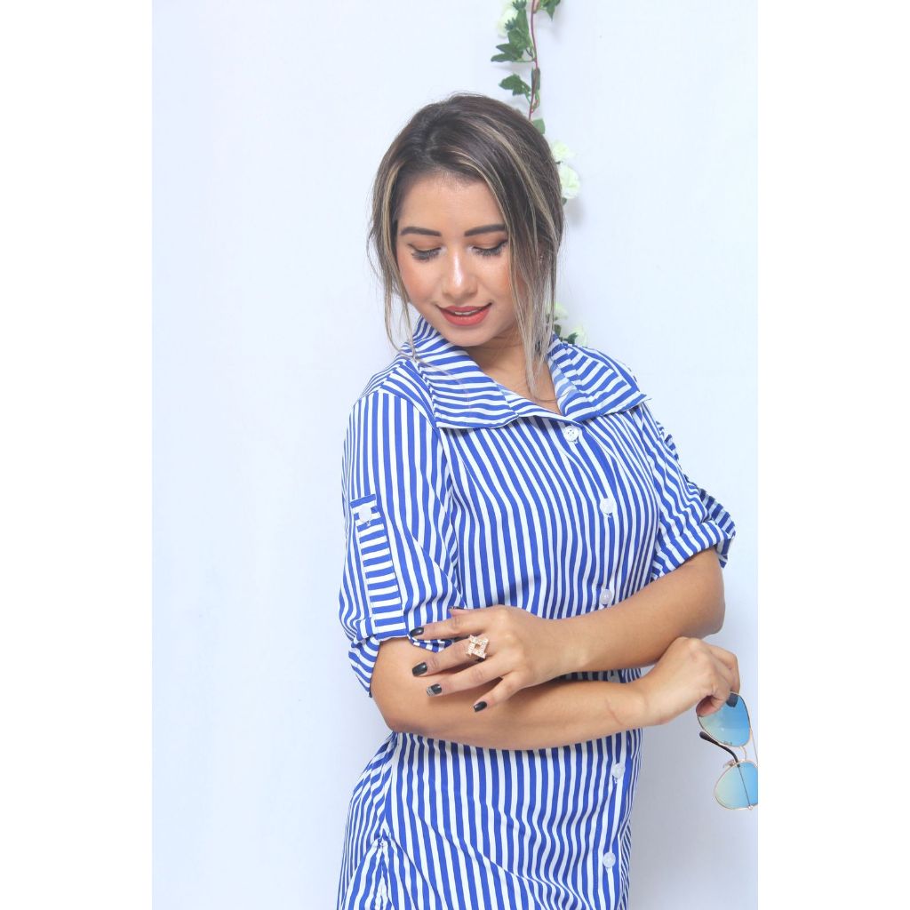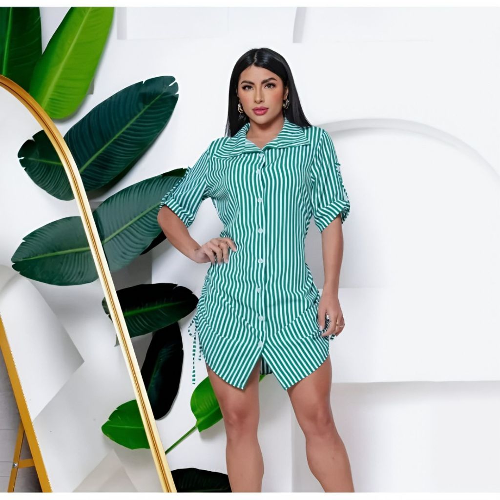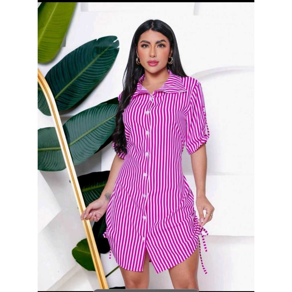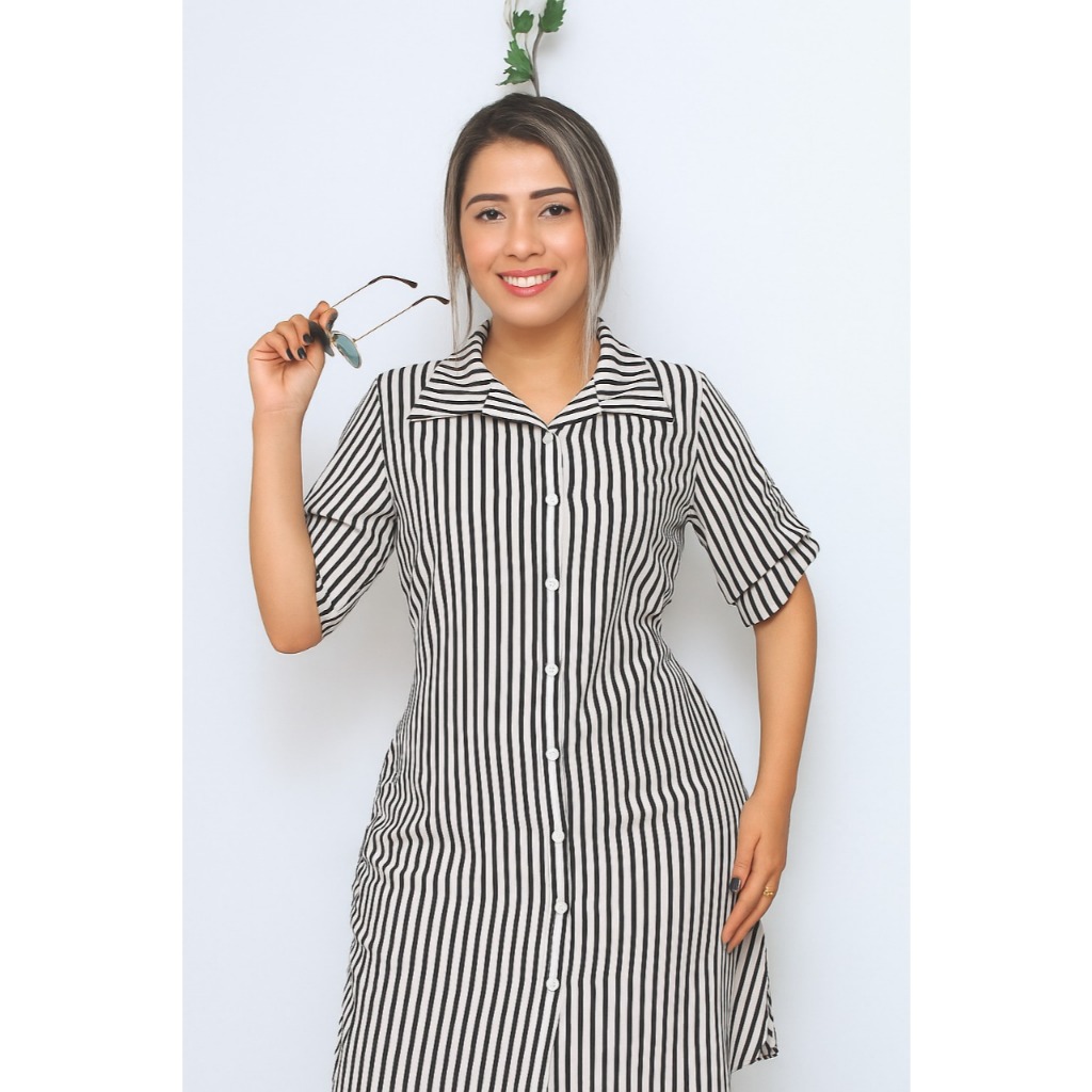 Vestido Chamise Social Feminino em Tecido Crepe Listrado – Estilo Casual e Sofisticado