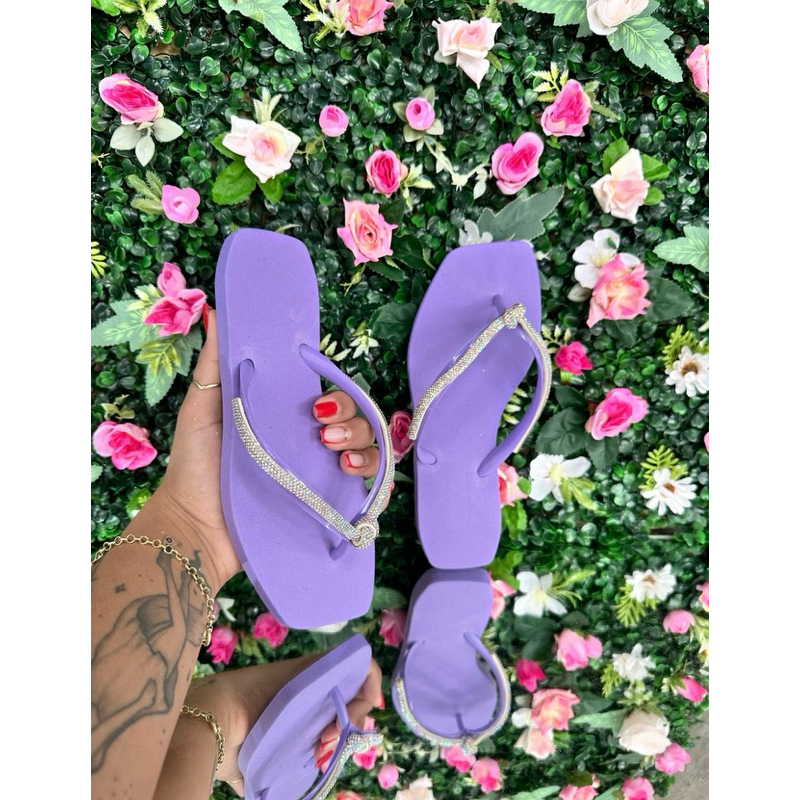 Chinelo Feminino Personalizado de Strass Bico Quadrado