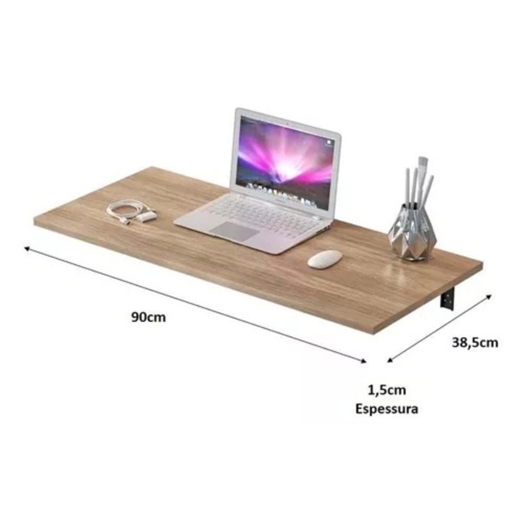 Mesa Dobrável Retrátil de Parede 90x38 Suspensa Escritório Cozinha