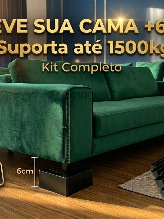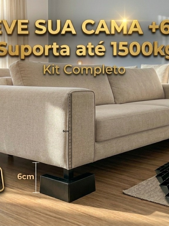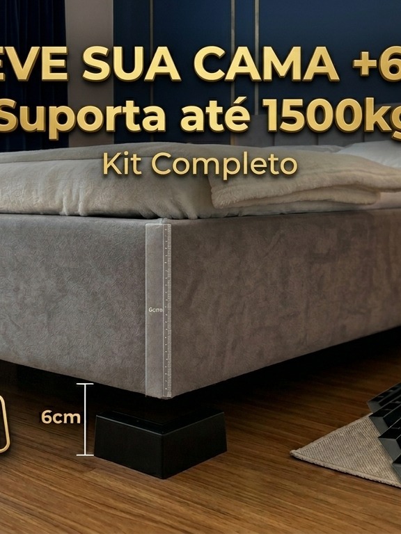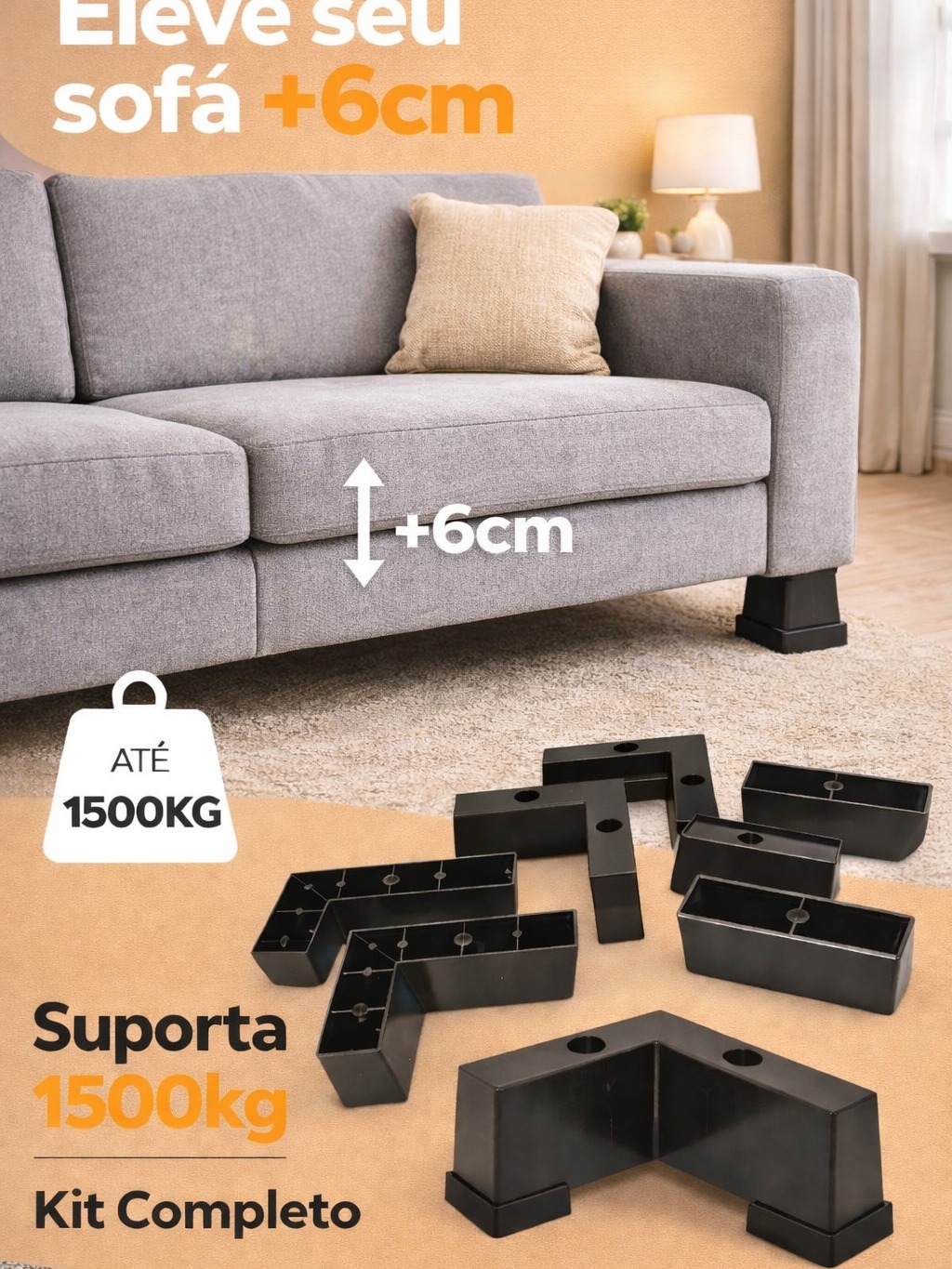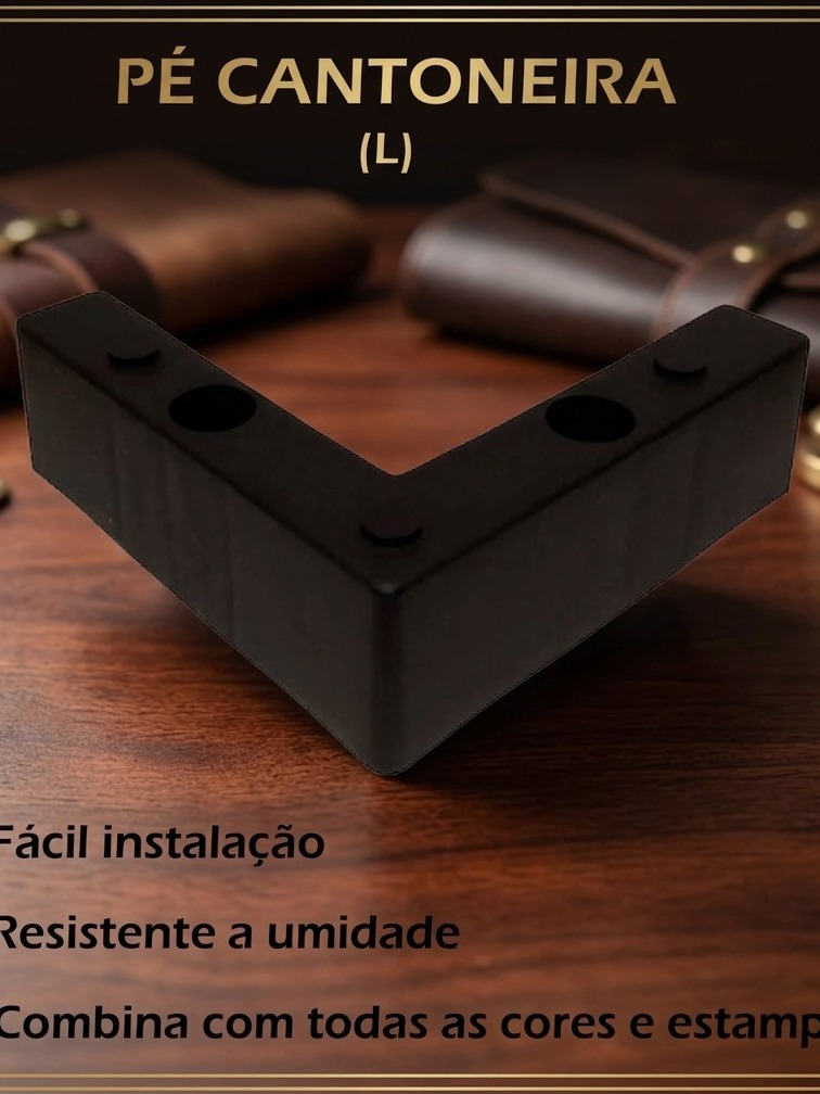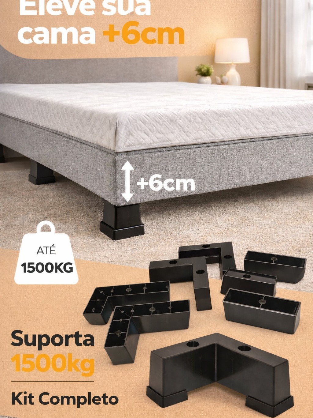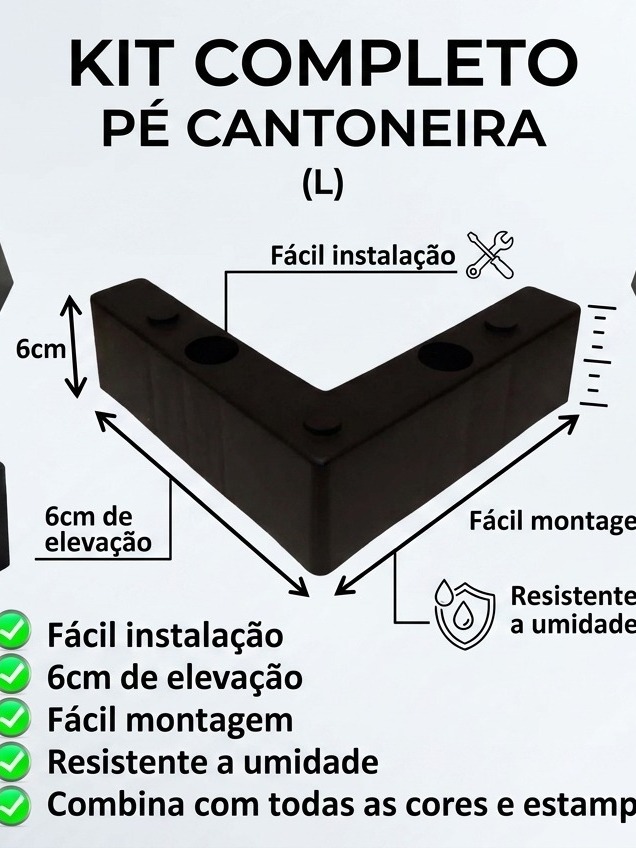 Pés para Cama Box BAU e Sofá 6cm L Reforçado Kit 4 E 2 Unidades Cantoneira Alta Resistência Preto
