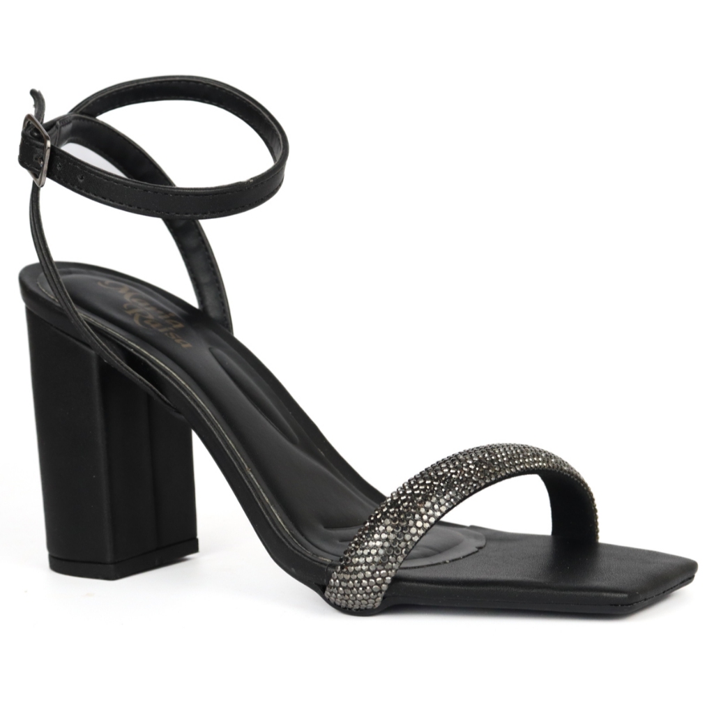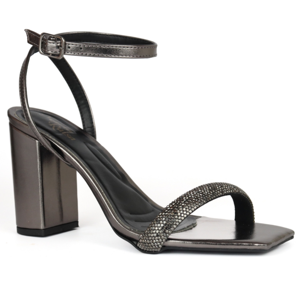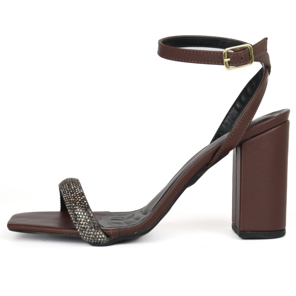 Sandália Feminina Salto Bloco Strass Brilhante