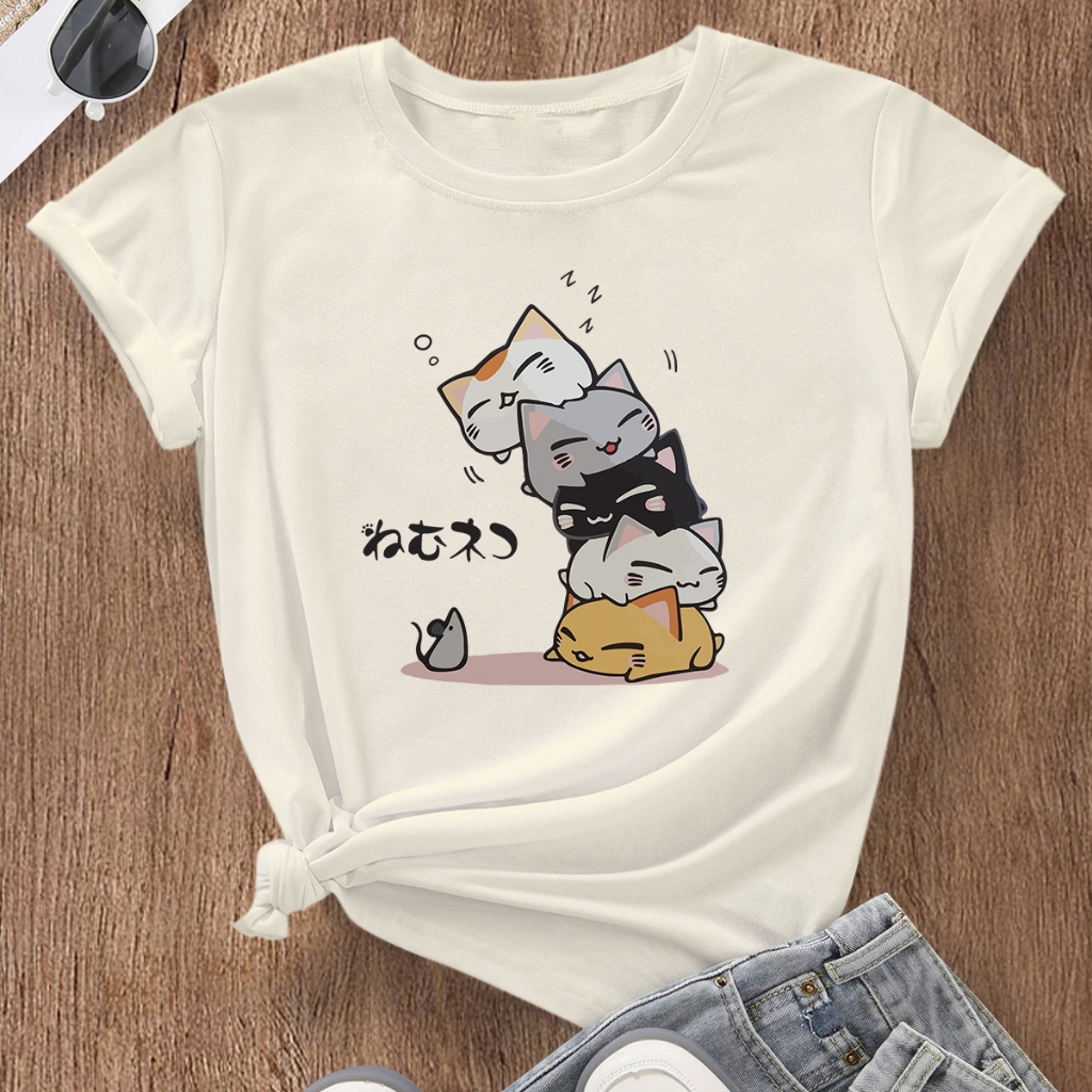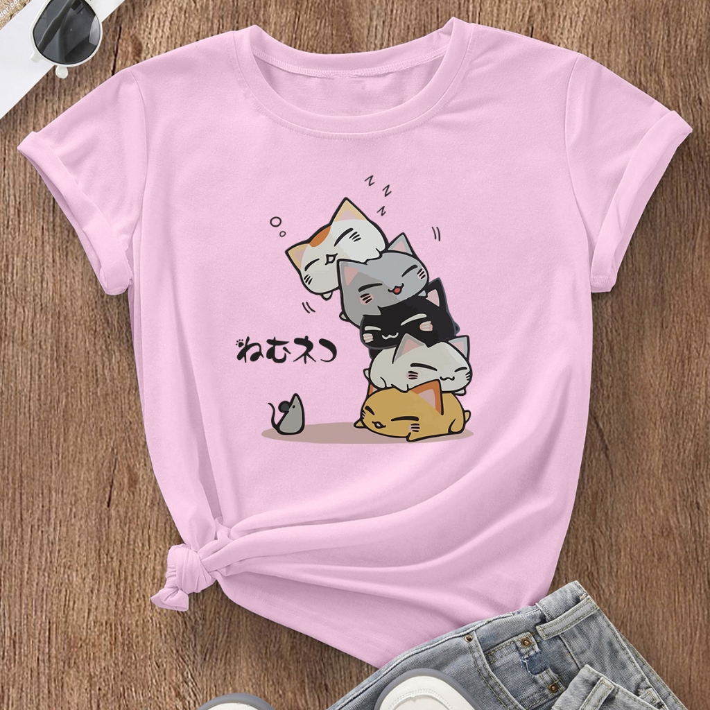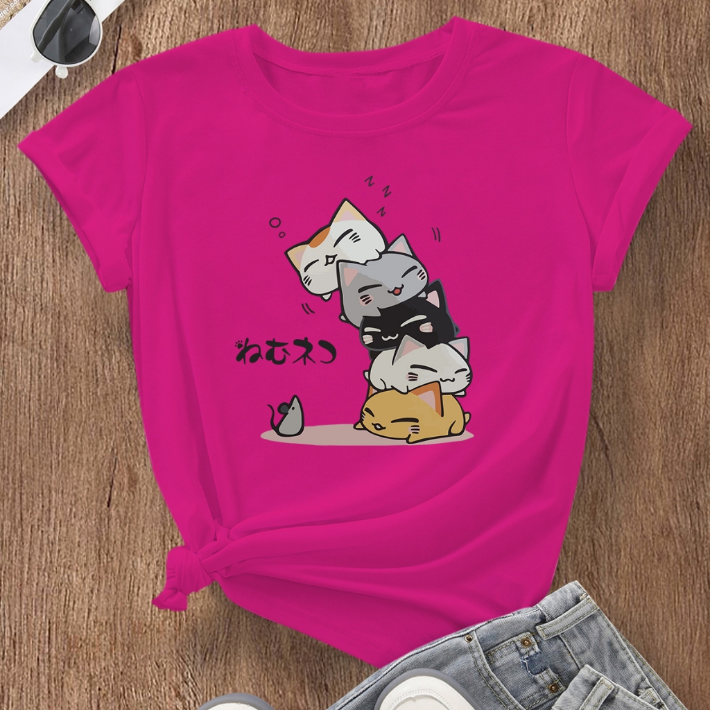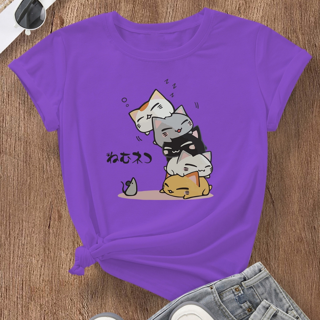 Camiseta Tshirt Feminina Blusa Estampada Gatinhos Gato Cat Cores