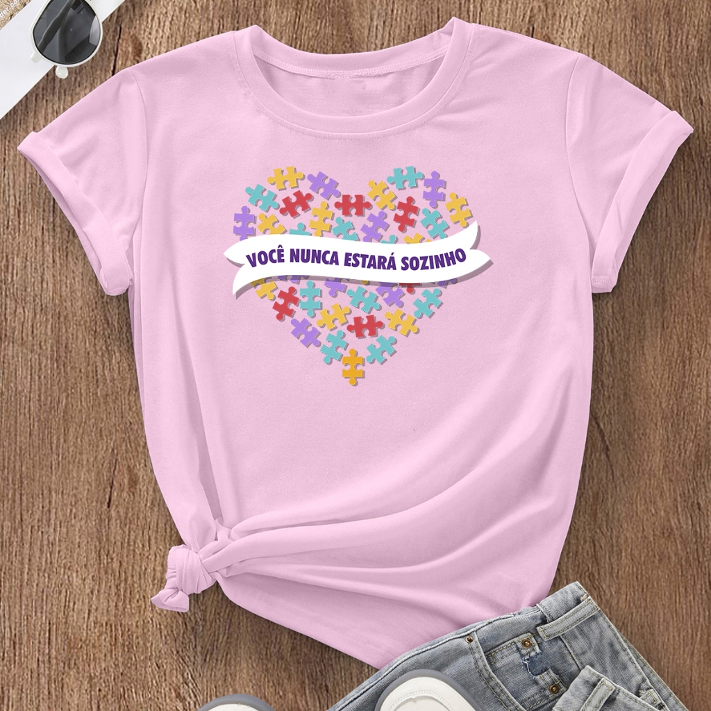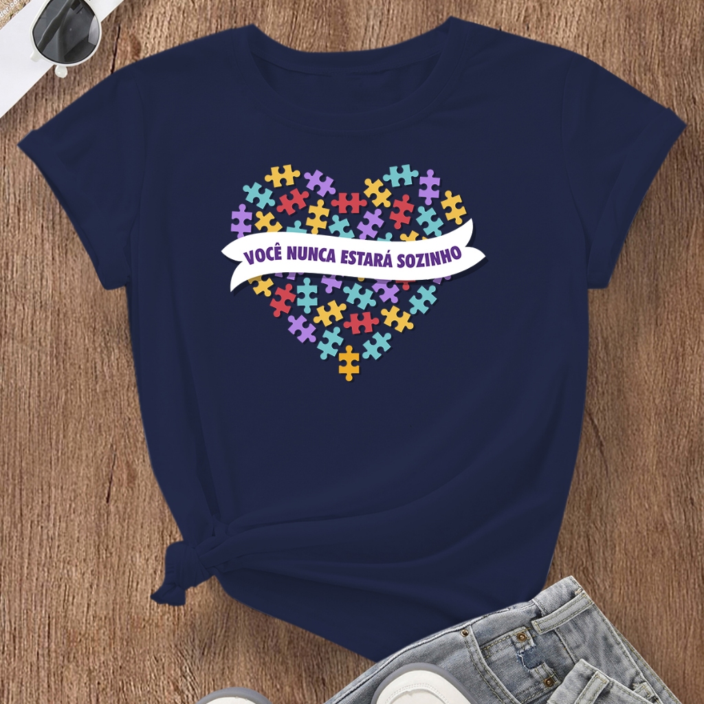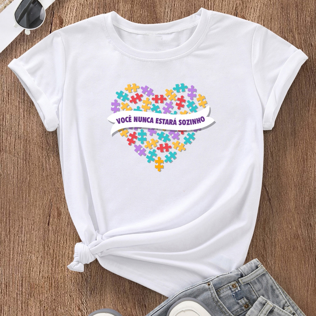 Camiseta Mãe de Autista Blusa Feminina Tshirt Coração Autismo Básica Estampada
