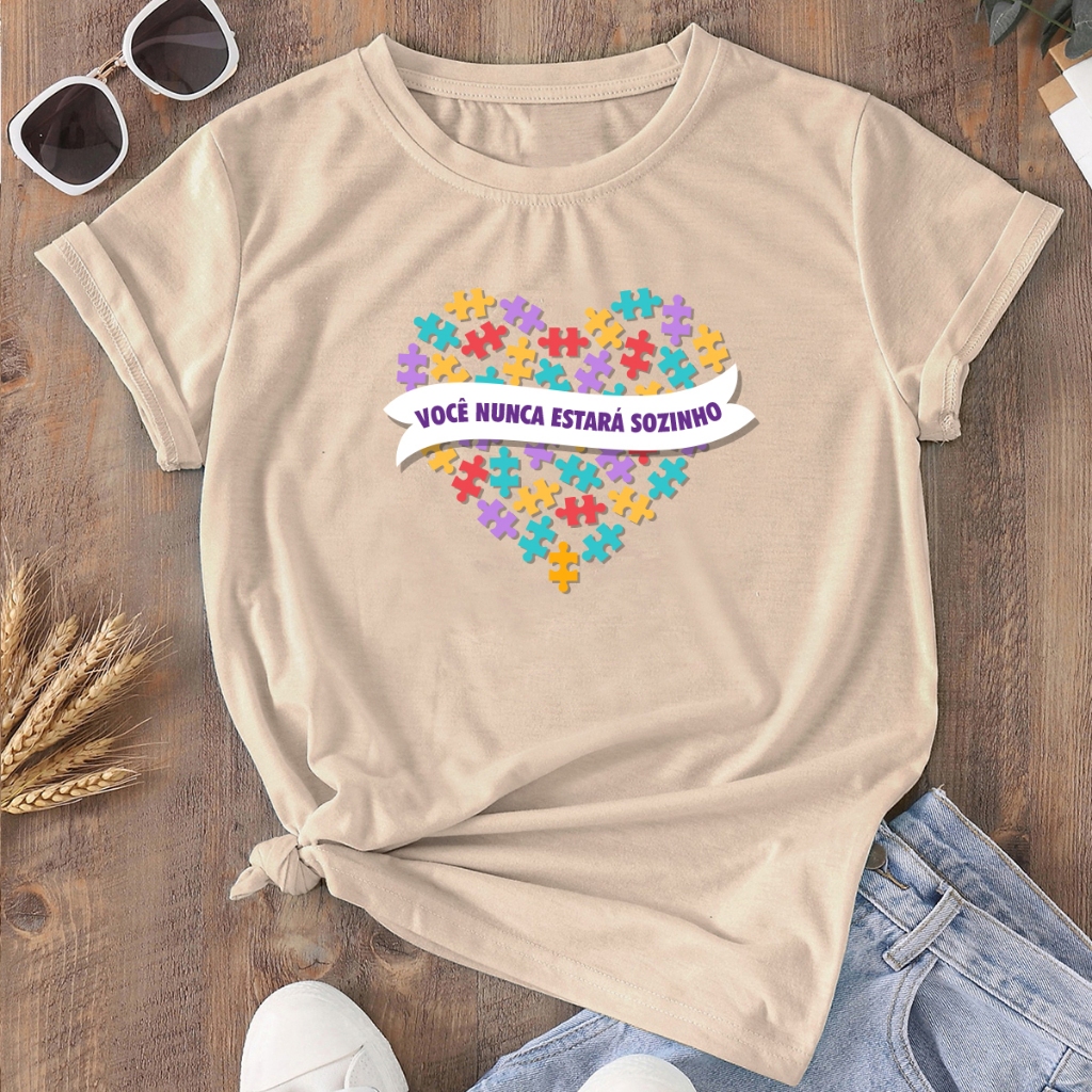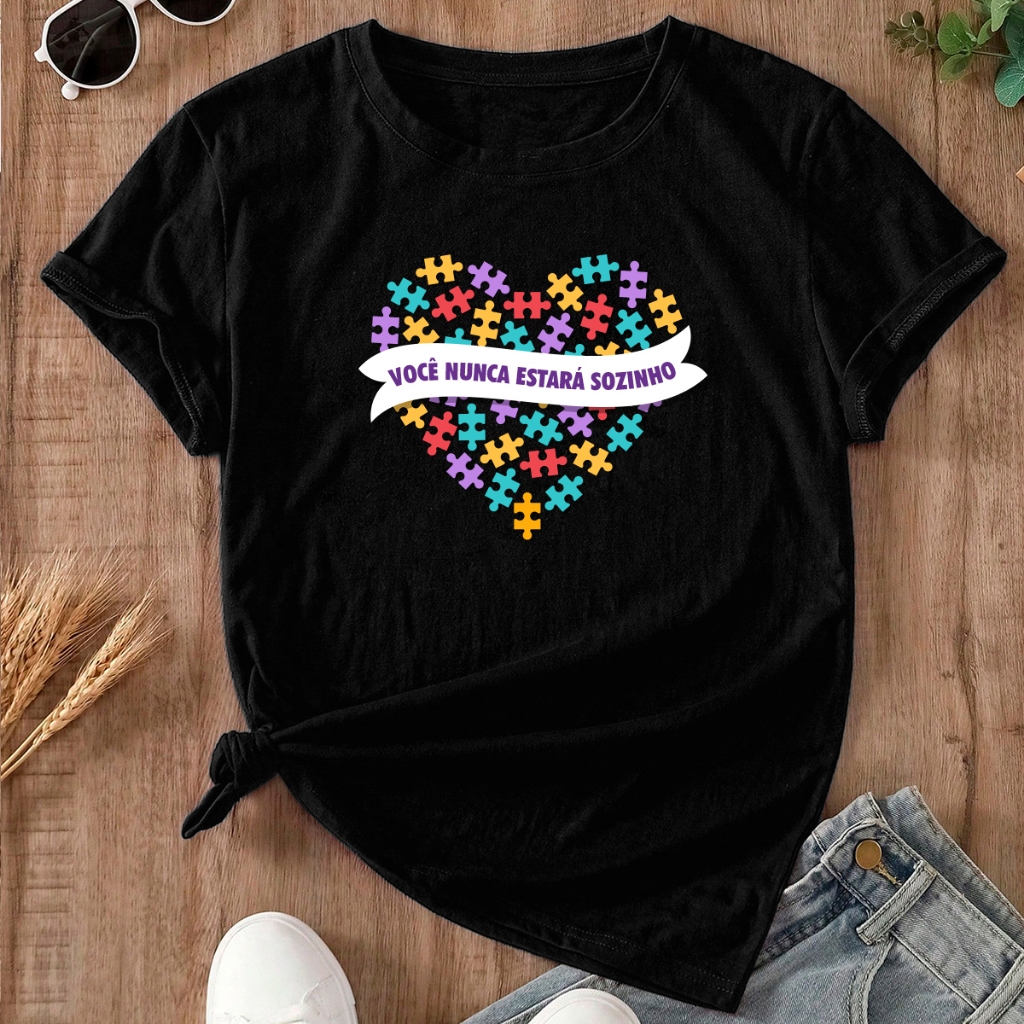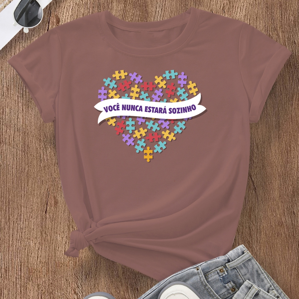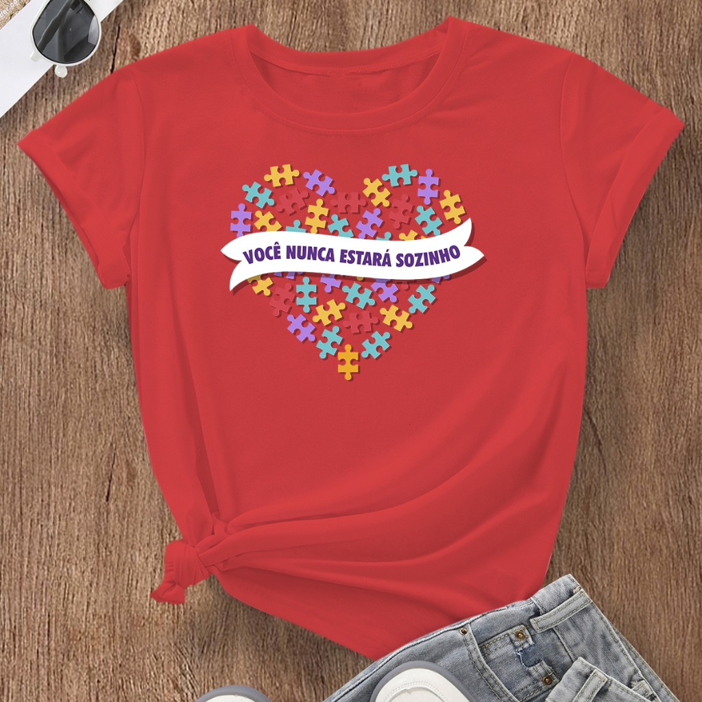 Camiseta Mãe de Autista Blusa Feminina Tshirt Coração Autismo Básica Estampada