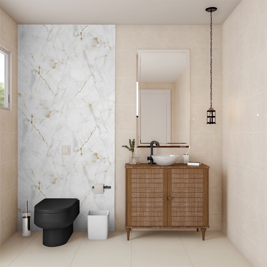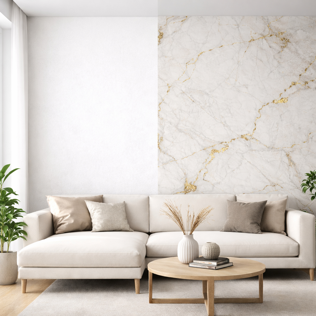 Papel de Parede Mármore Branco e Dourado Adesivo | Vinílico Lavável e Impermeável | Full