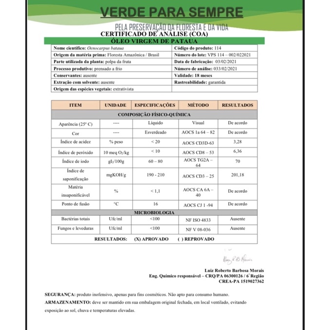 Óleo Vegetal Patauá Virgem