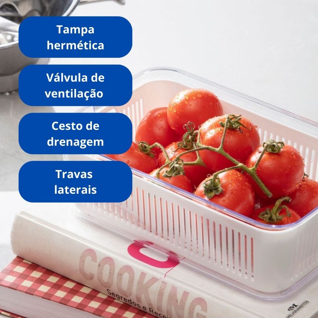Pote Slim Hermético Com Escorredor Interno e Trava 2570ml