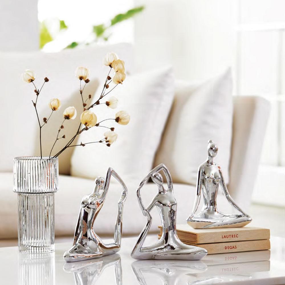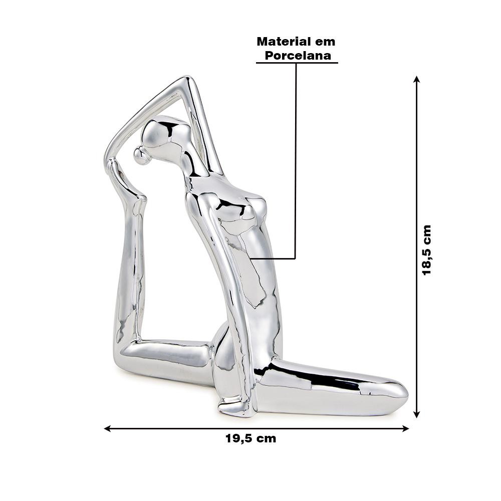Escultura Decorativa de Yoga em Porcelana 18,5x19,5x6,5 Prata - Gran Belo