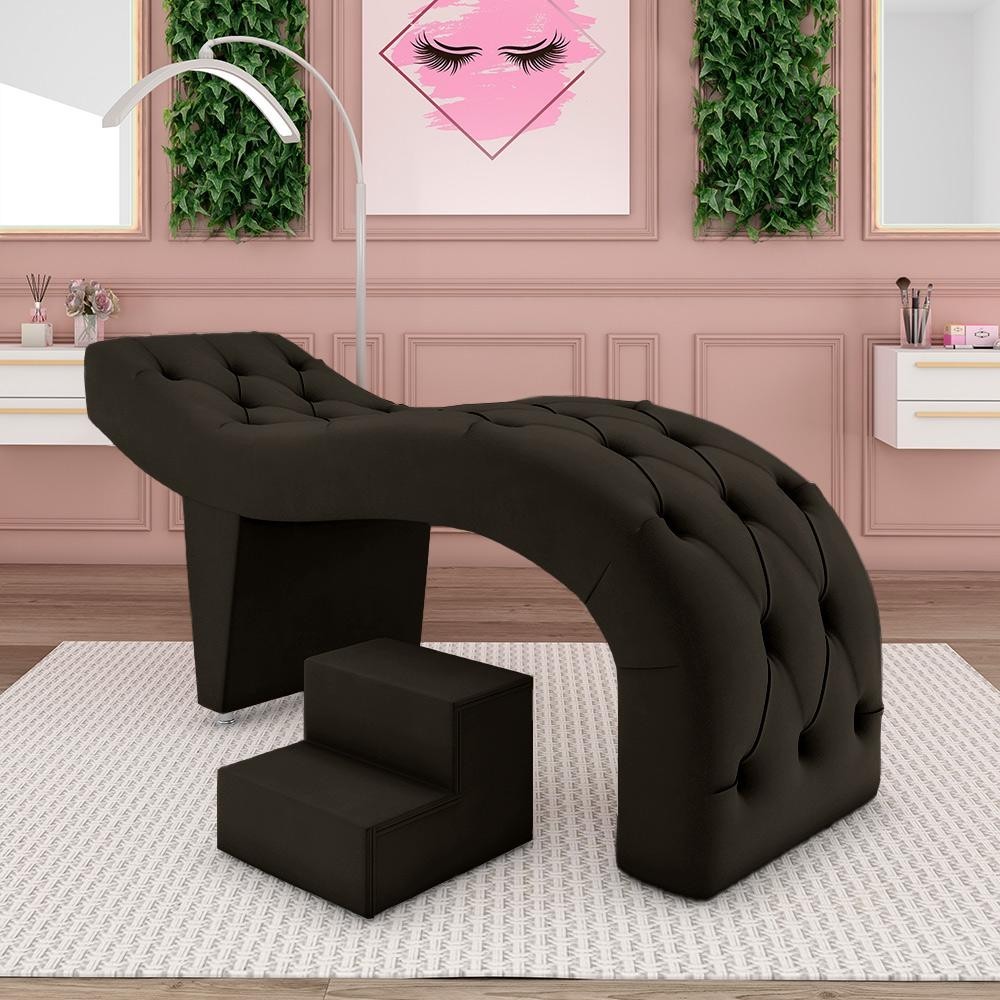 Maca de Estética para Massagem Cílios Fixa Lash Estofada com Escada Veludo Marrom G83 - Gran Belo