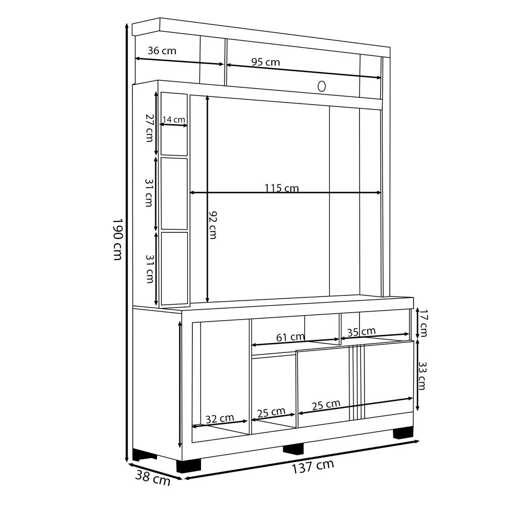 Home Estante para TV até 50 2 Portas MDP/MDF 190cm Nichos Laterais Brogy Nogueira/Off White G73