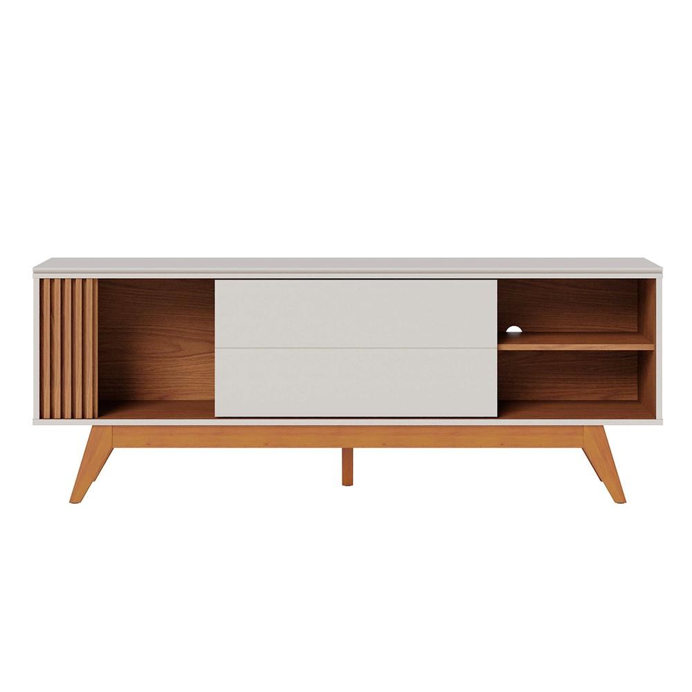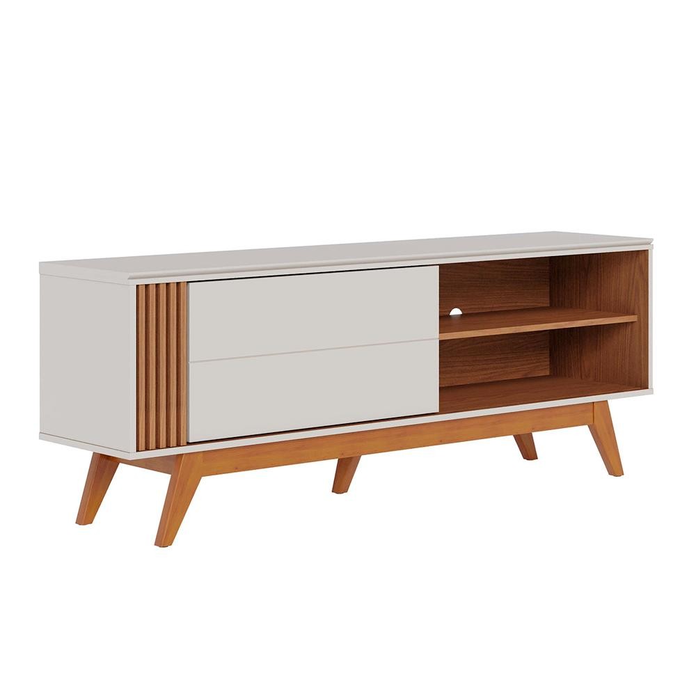 Rack Bancada Pés Madeira Nuro 160cm Porta Deslizante MDF/MDP TV até 60 Off White/Freijó G73 - Gran Belo