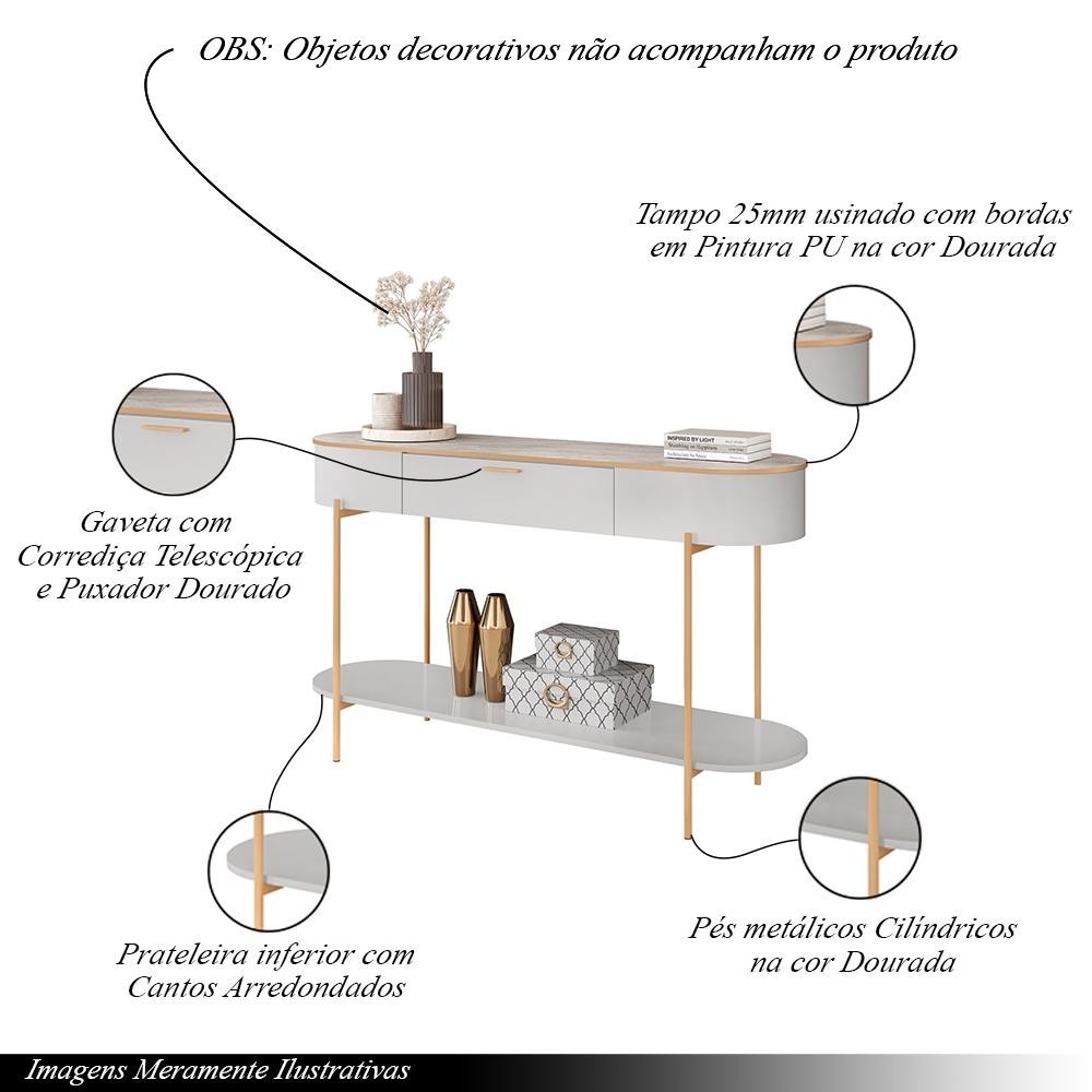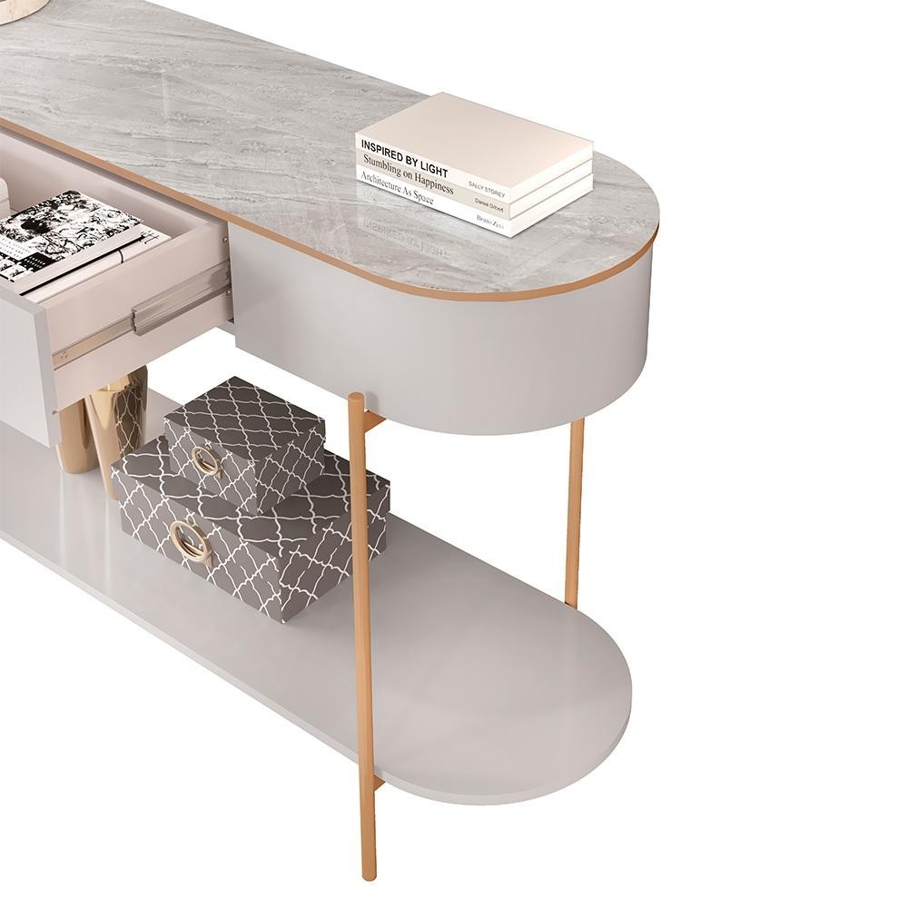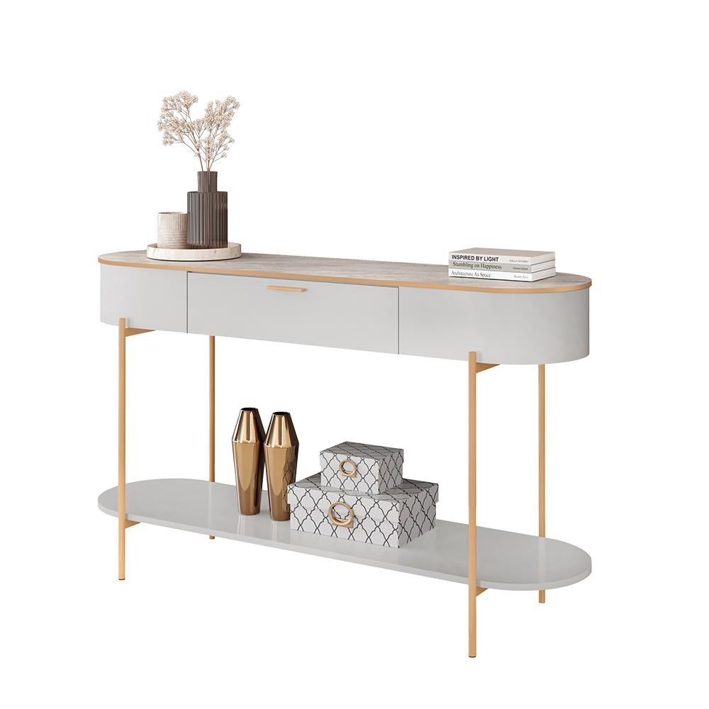 Aparador Decorativo Amanda 1 Gaveta e 1 Prateleira Pés Metálicos Dourados Fendi/Quartzo G18 - Gran