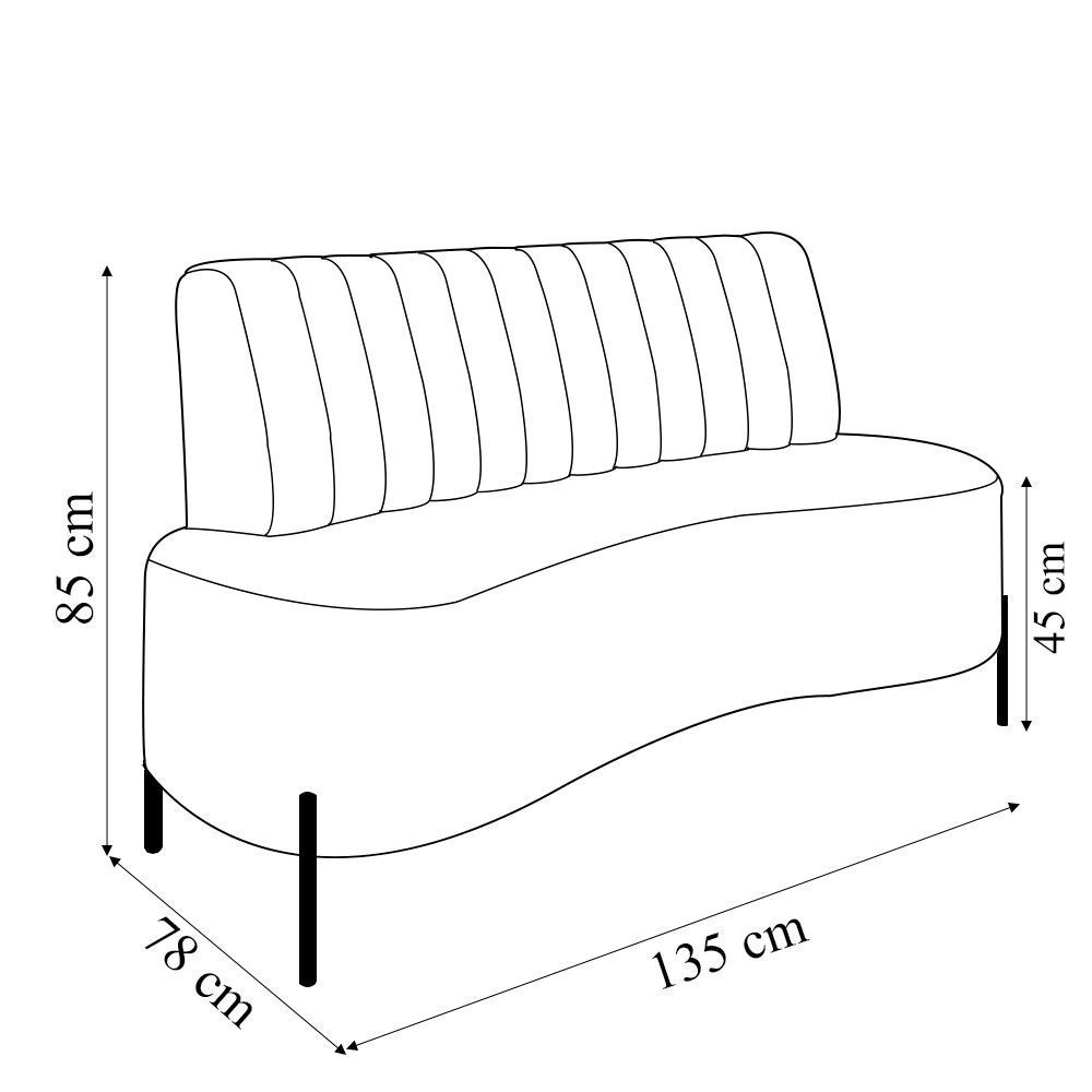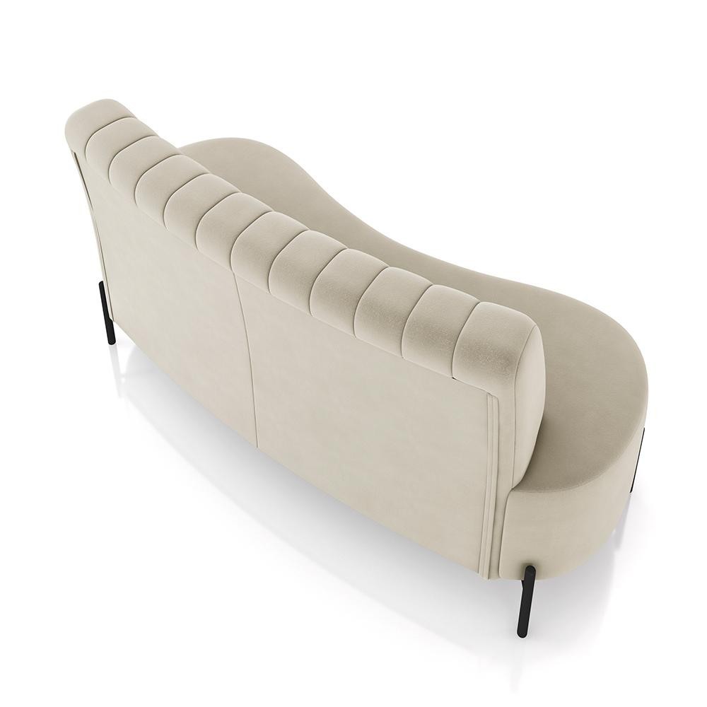 Sofá Living Decorativo 2 Lugares 1,35M Katara Pés de Ferro Veludo Bege G33 - Gran Belo
