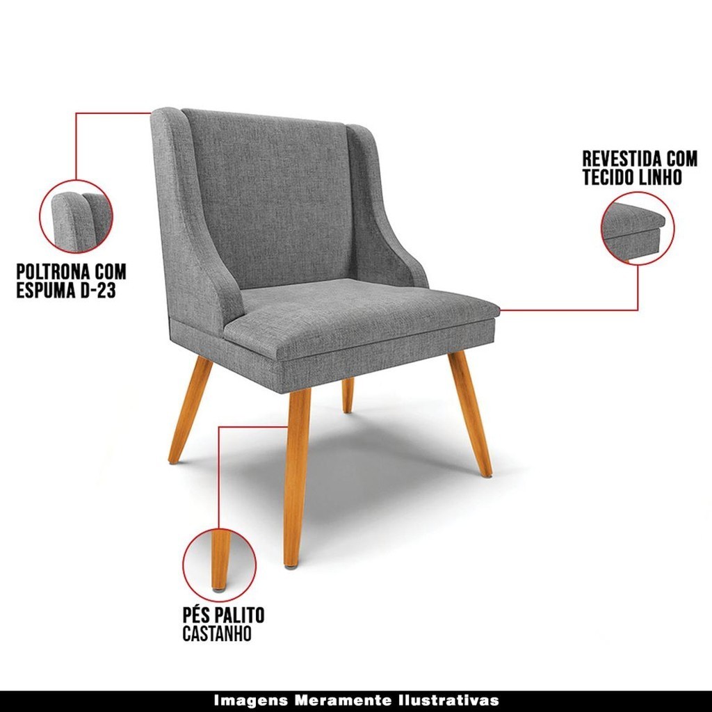 Kit 2 Poltronas Decorativas Pés Palito de Madeira Firenze Linho Grafite/Natural G19 - Gran Belo