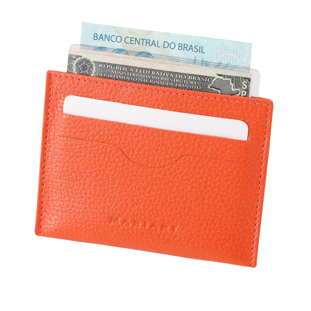 Porta-Cartão Feminino de Couro Bovino Legítimo p/ CNH, Cartões e Notas Dobradas Mariart Zircônio