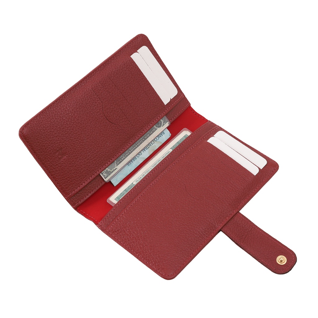 Carteira Feminina Couro Legítimo C/ Botão RG CNH Cartões Cédulas Moedas Mariart 172