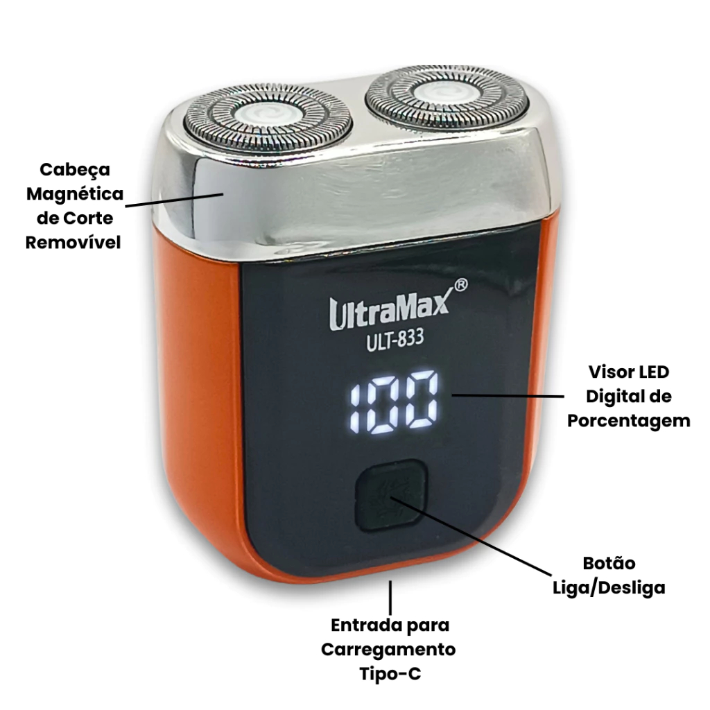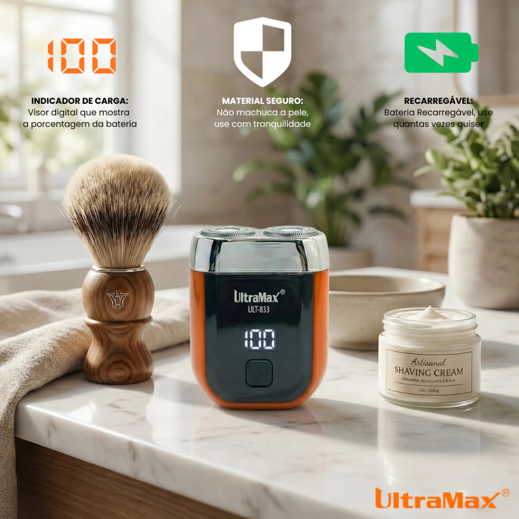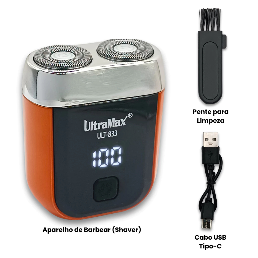Mini barbeador elétrico masculino recarregável com visor digital e design de lâmina dupla