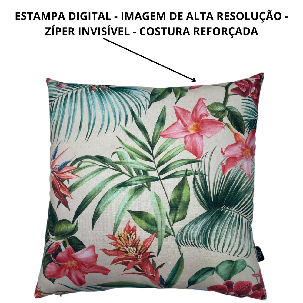 Kit 4 Almofadas Cheias Impermeável Estampa Digital 100% Algodão Flores e Verde Riscado 43cmx43cm