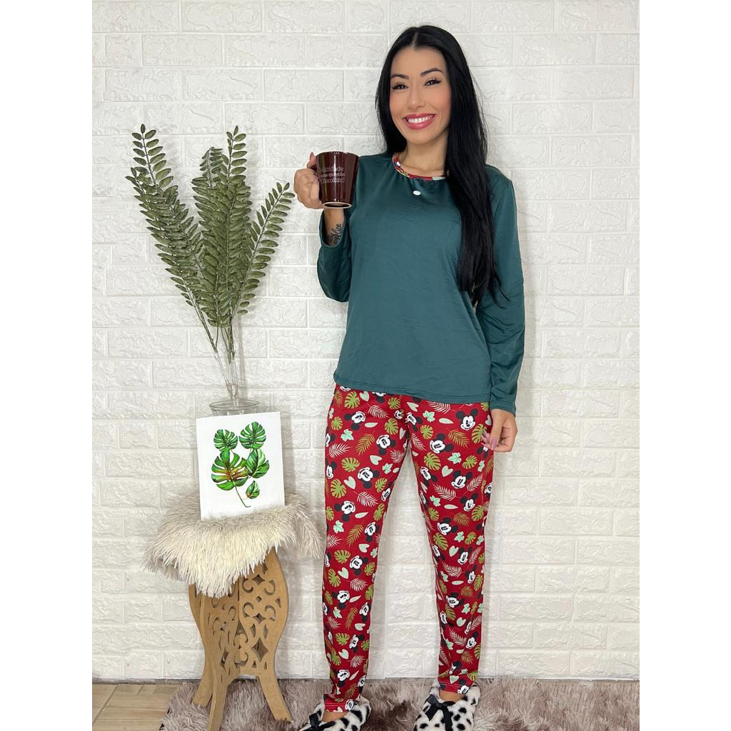 Pijama de Frio Manga Longa Personagens e Estampado das Blogueiras Rafaela.