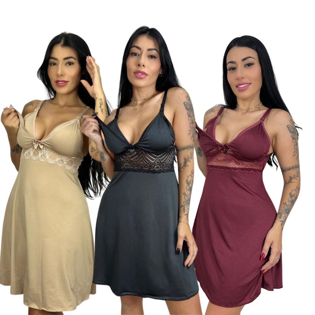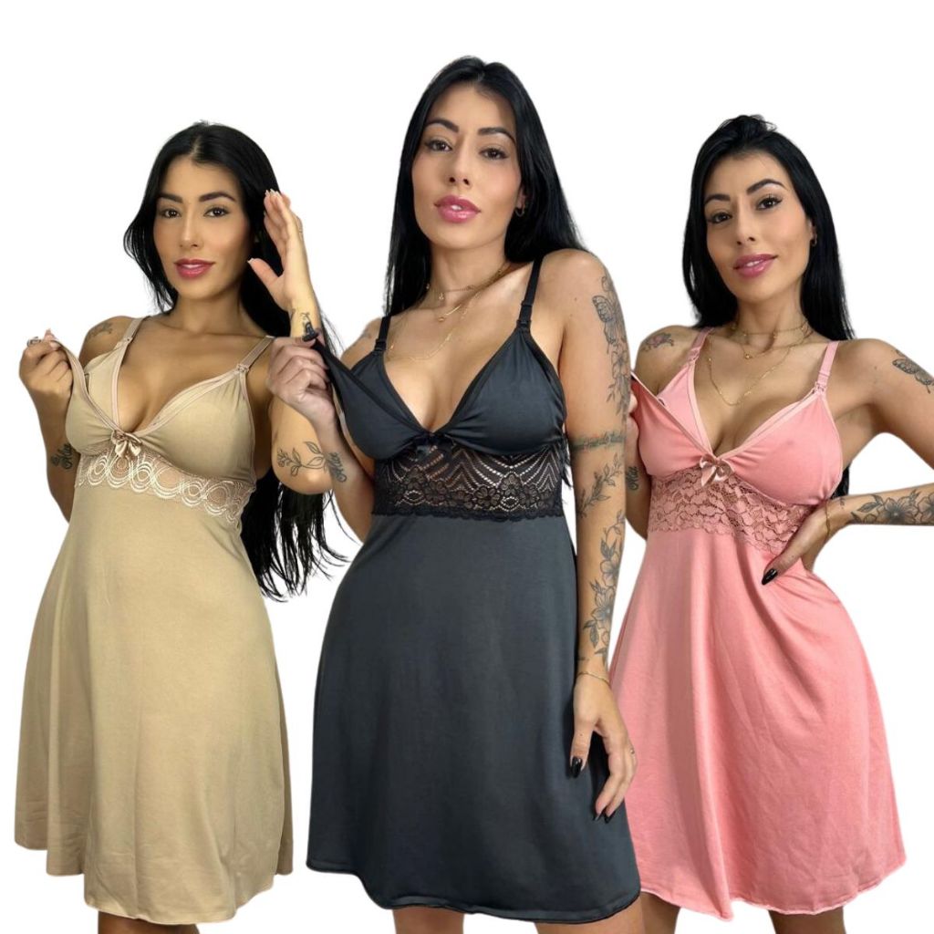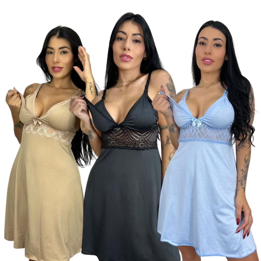 KIT 03 Camisolas Amamentação com Detalhe em Renda Saída Maternidade Grávida Gestante Lactante.