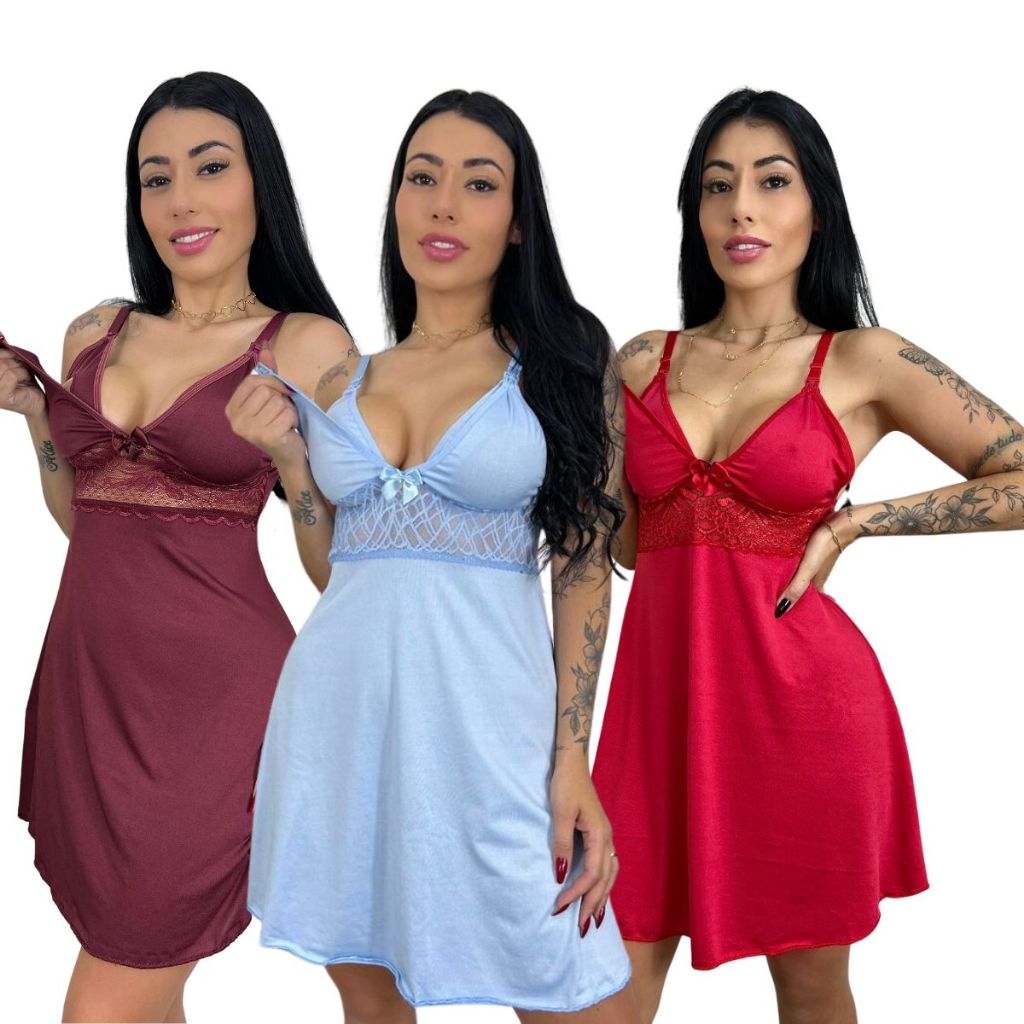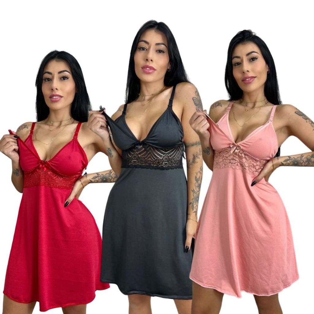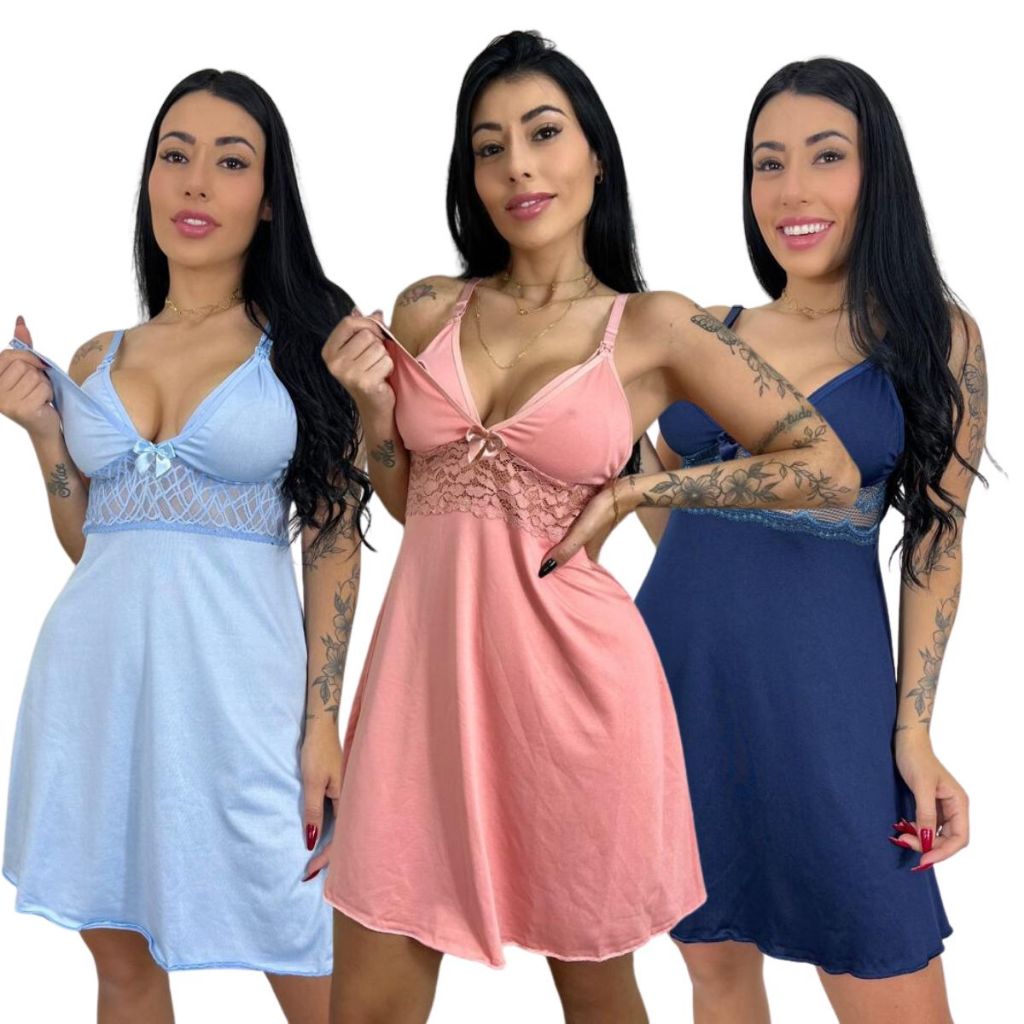 KIT 03 Camisolas Amamentação com Detalhe em Renda Saída Maternidade Grávida Gestante Lactante.