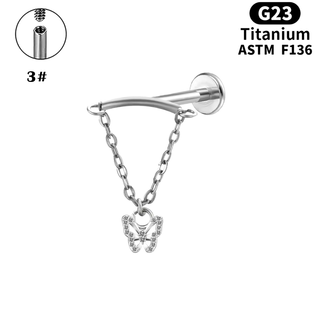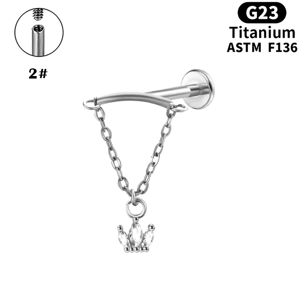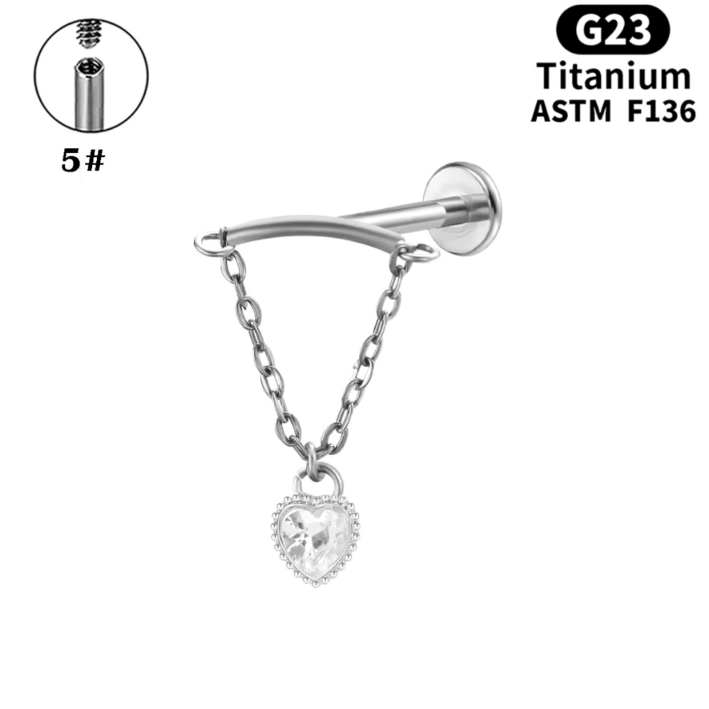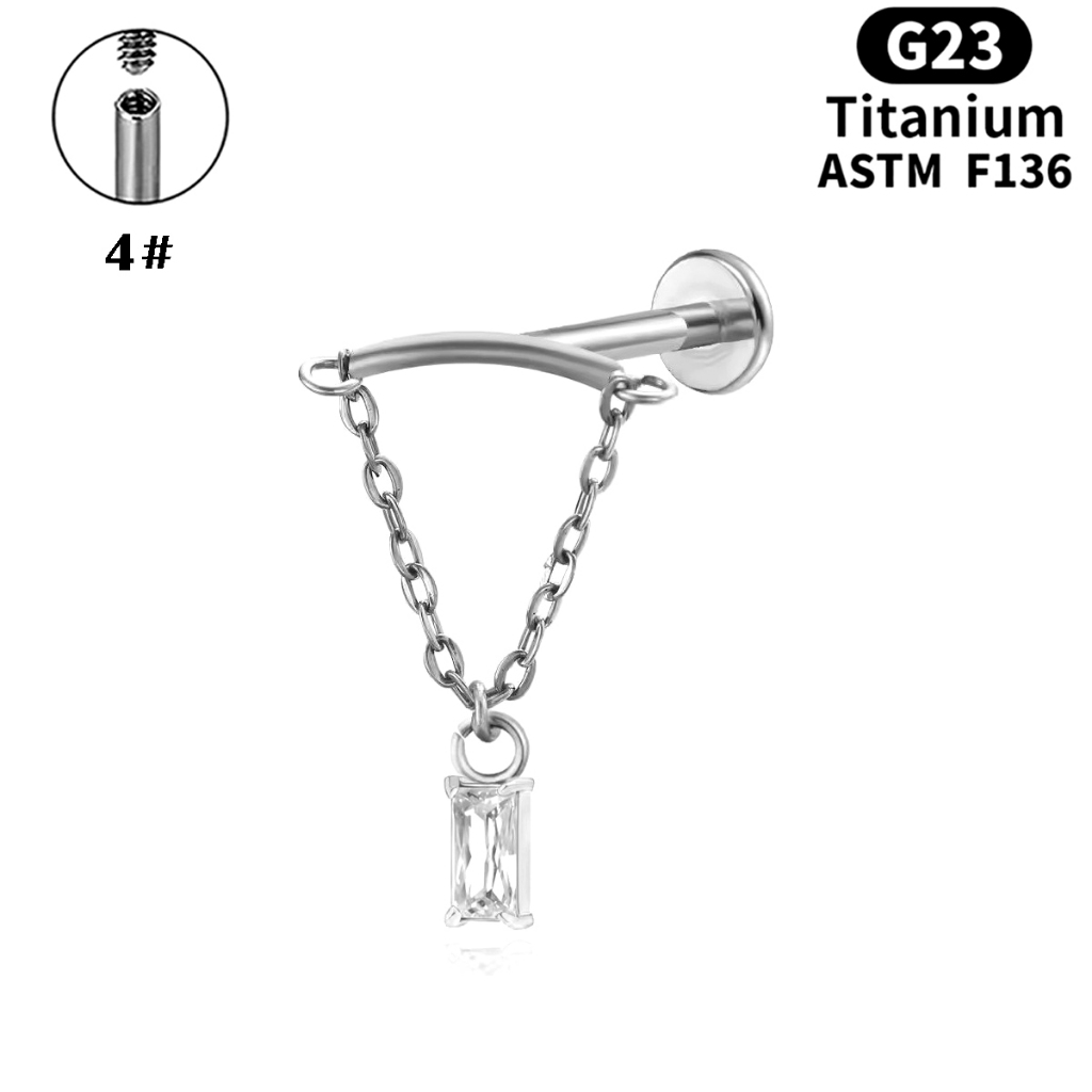 Prego Labial De Liga De Titânio G23 Corrente De Orelha De Zircão Joias De Punção Humana