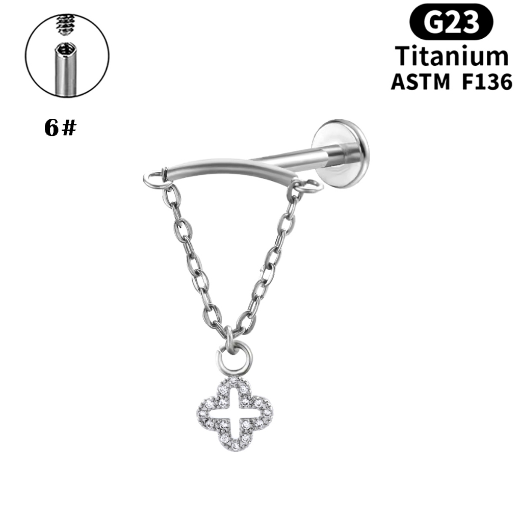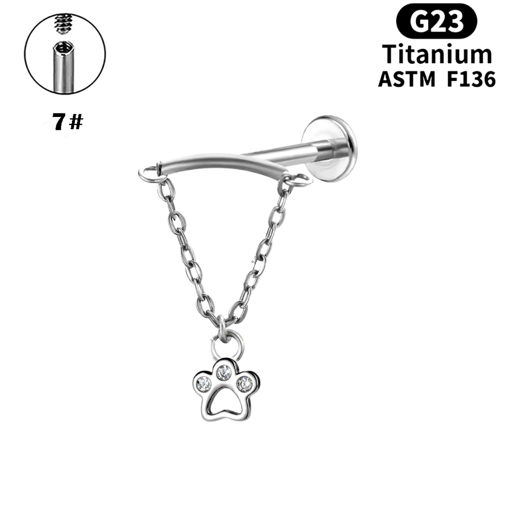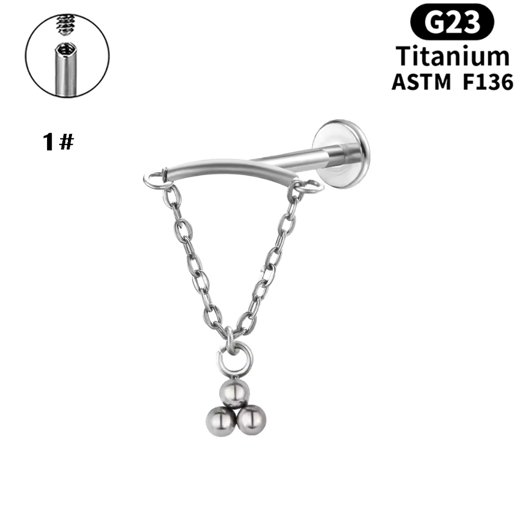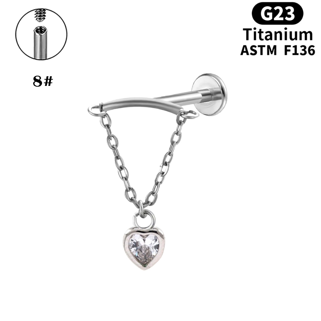 Prego Labial De Liga De Titânio G23 Corrente De Orelha De Zircão Joias De Punção Humana