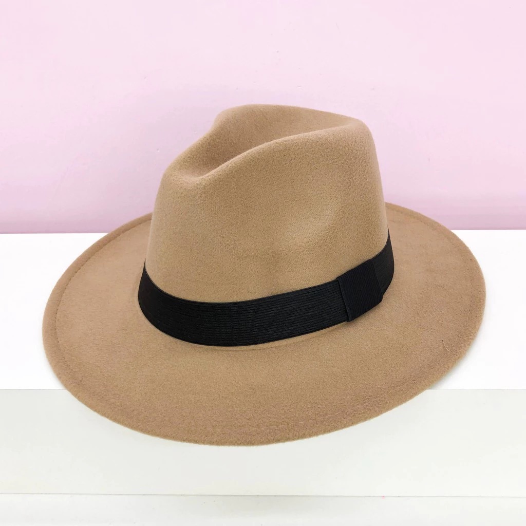 Chapéu Fedora Inverno Fita Feltro Aba Média Unissex Regulável Tamanho Padão Ref: AF-3