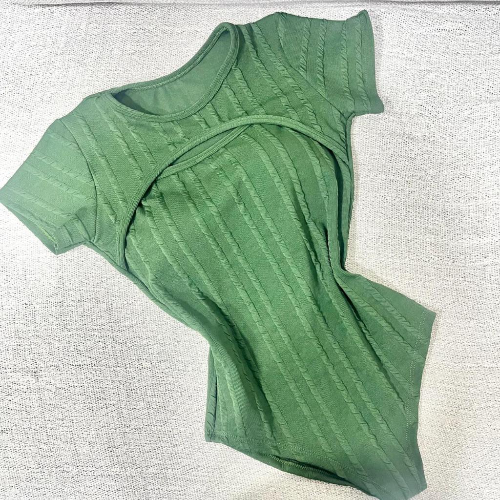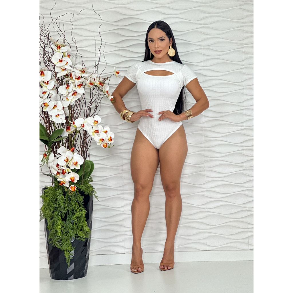 Body Feminino com bojo Manga Curta Bubble Com Decote Verão