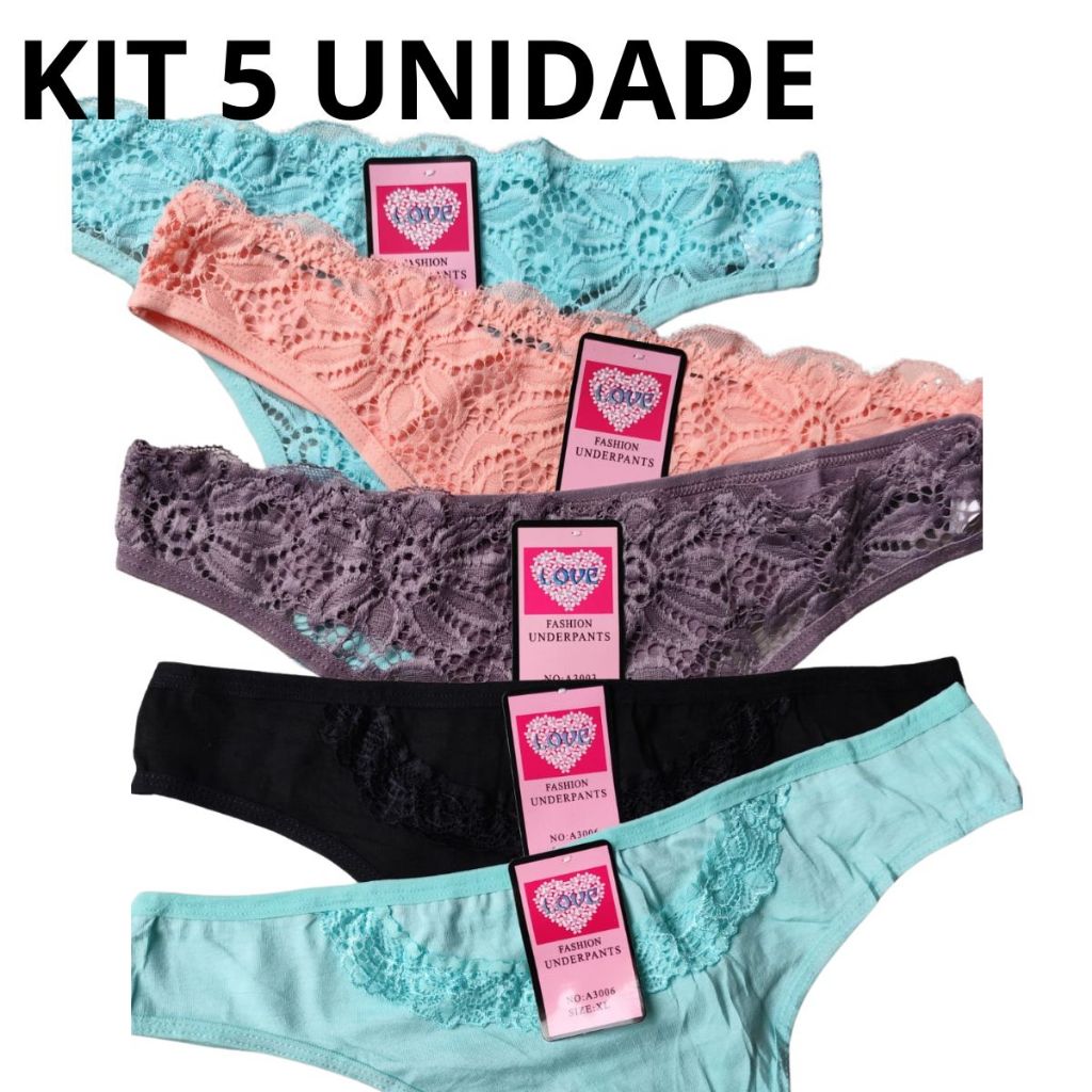 Kit com 5 Unidades Calcinha Fio Dental Renda Lingerie Sexy Confortável Cores Variadas