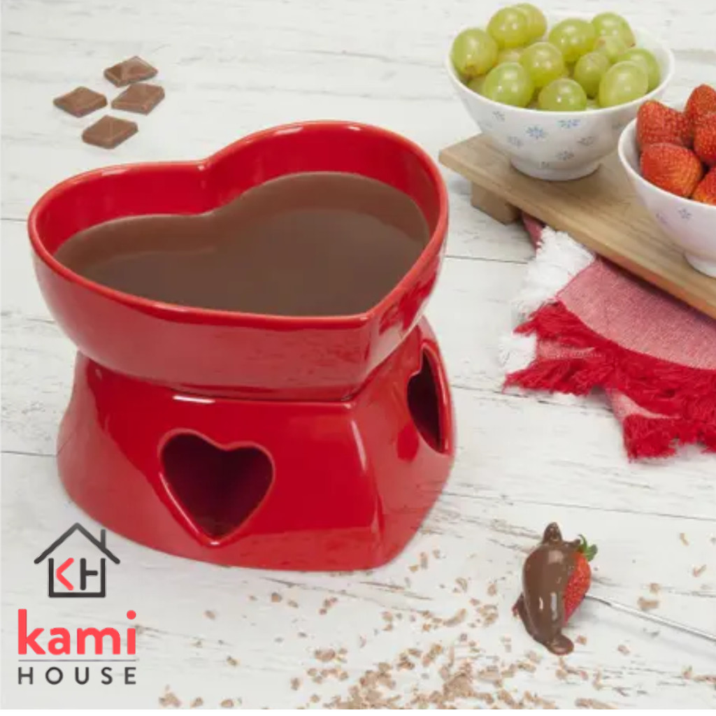 Panela de Fondue Coração com Porta Vela de Porcelana
