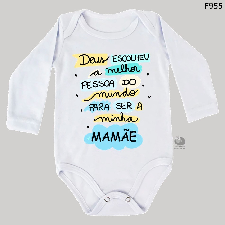 Body Roupa de Bebê Frases Deus Escolheu a Melhor pessoa do mundo para ser a minha mamãe F955