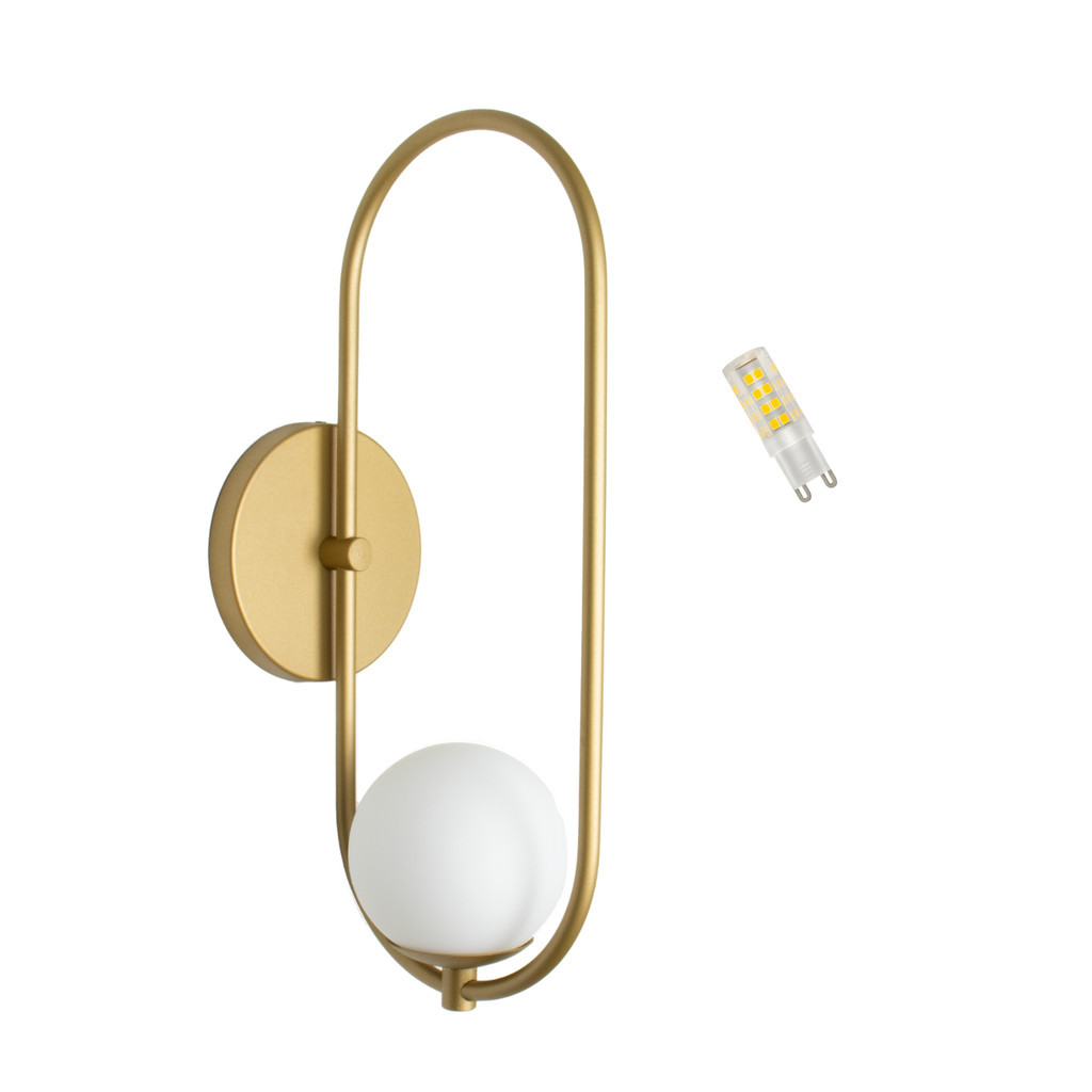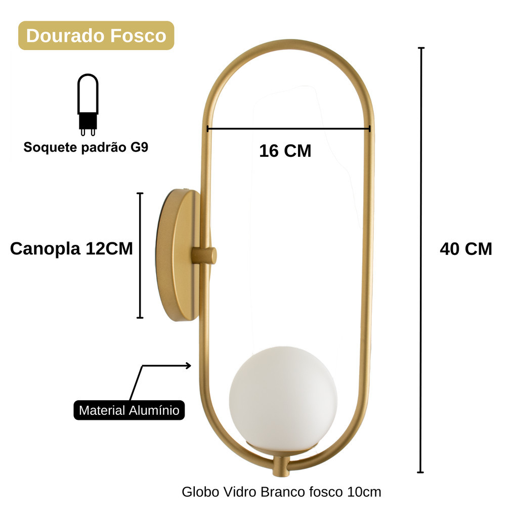 Arandela Parede Oval Madrid Dourado Fosco C/ Led Quente