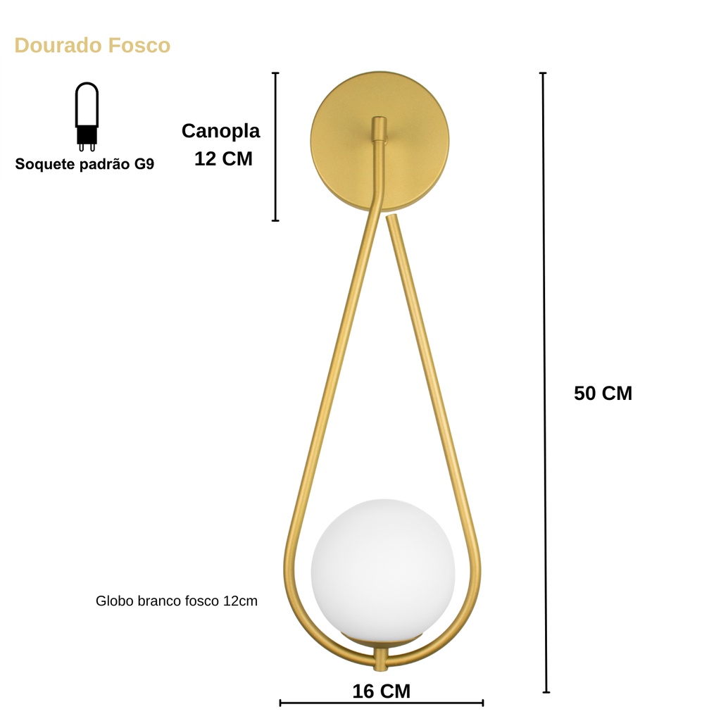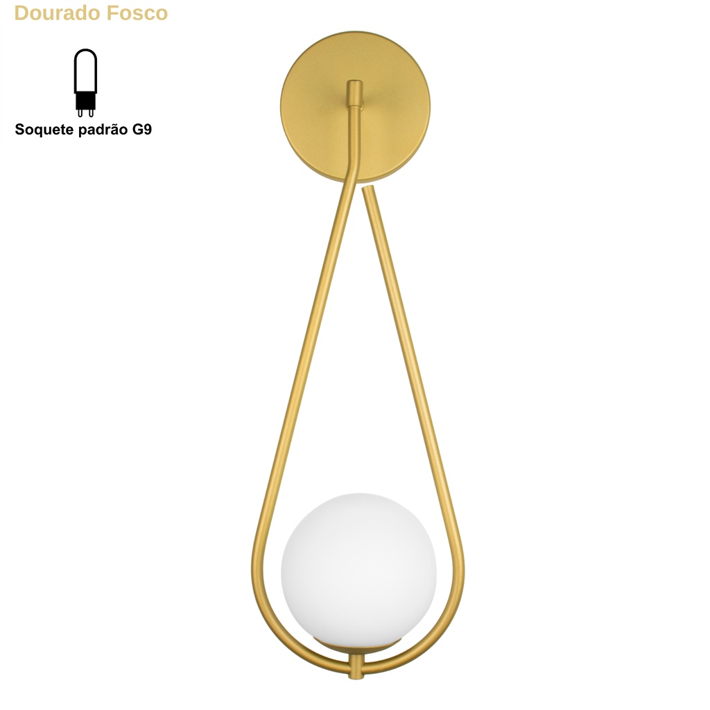 Arandela Gota Moderna Globo 12 Jabuticaba Dourado Fosco