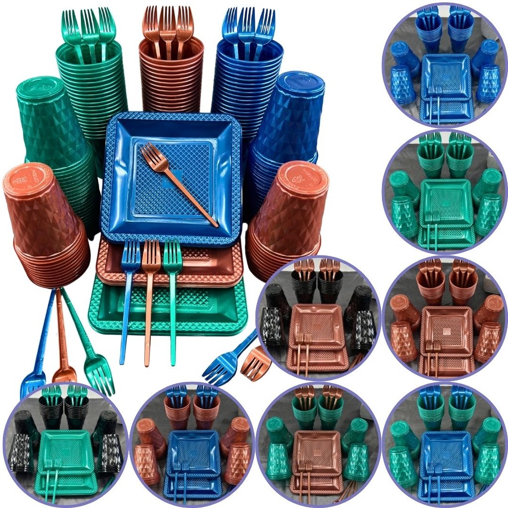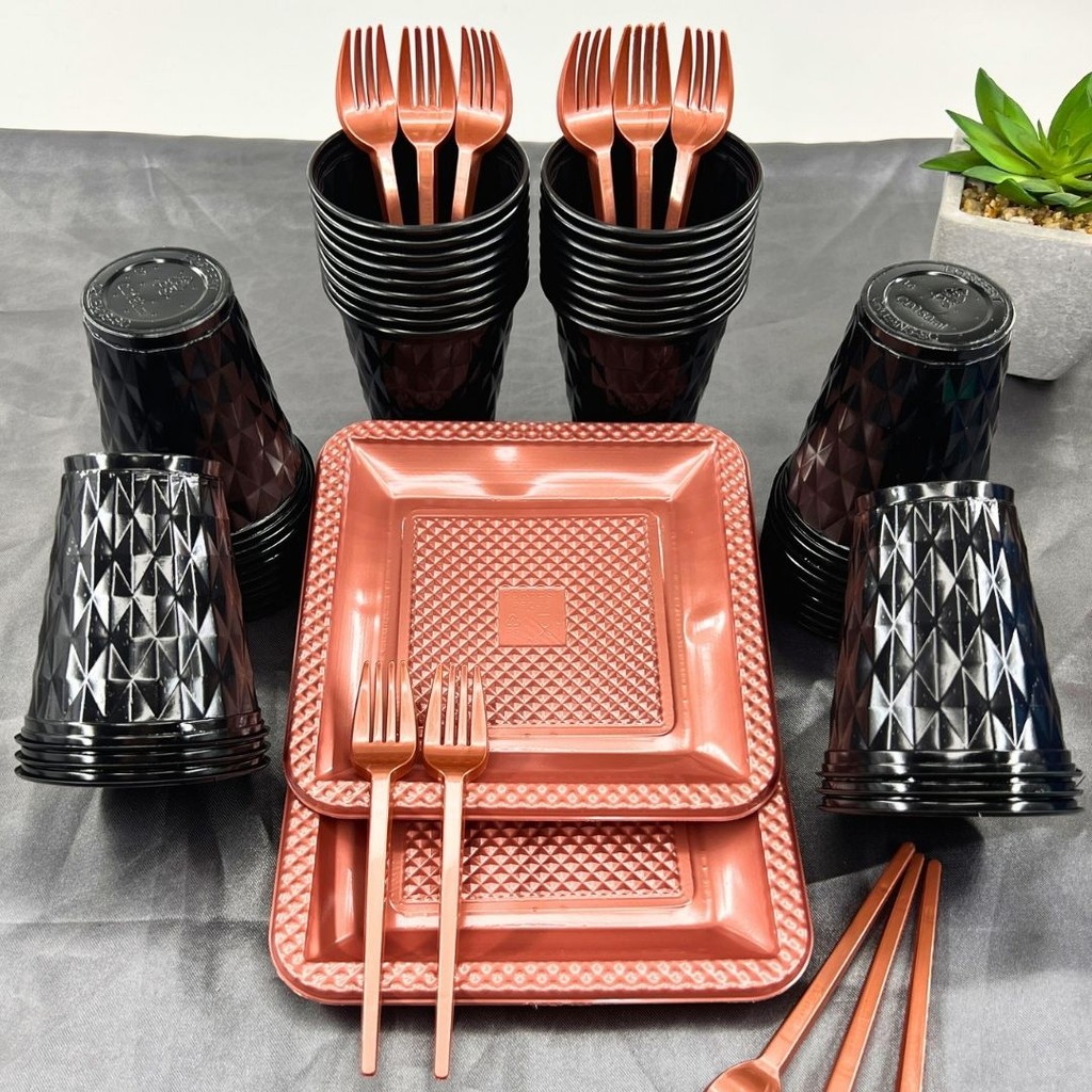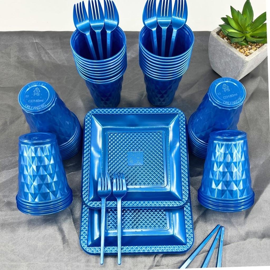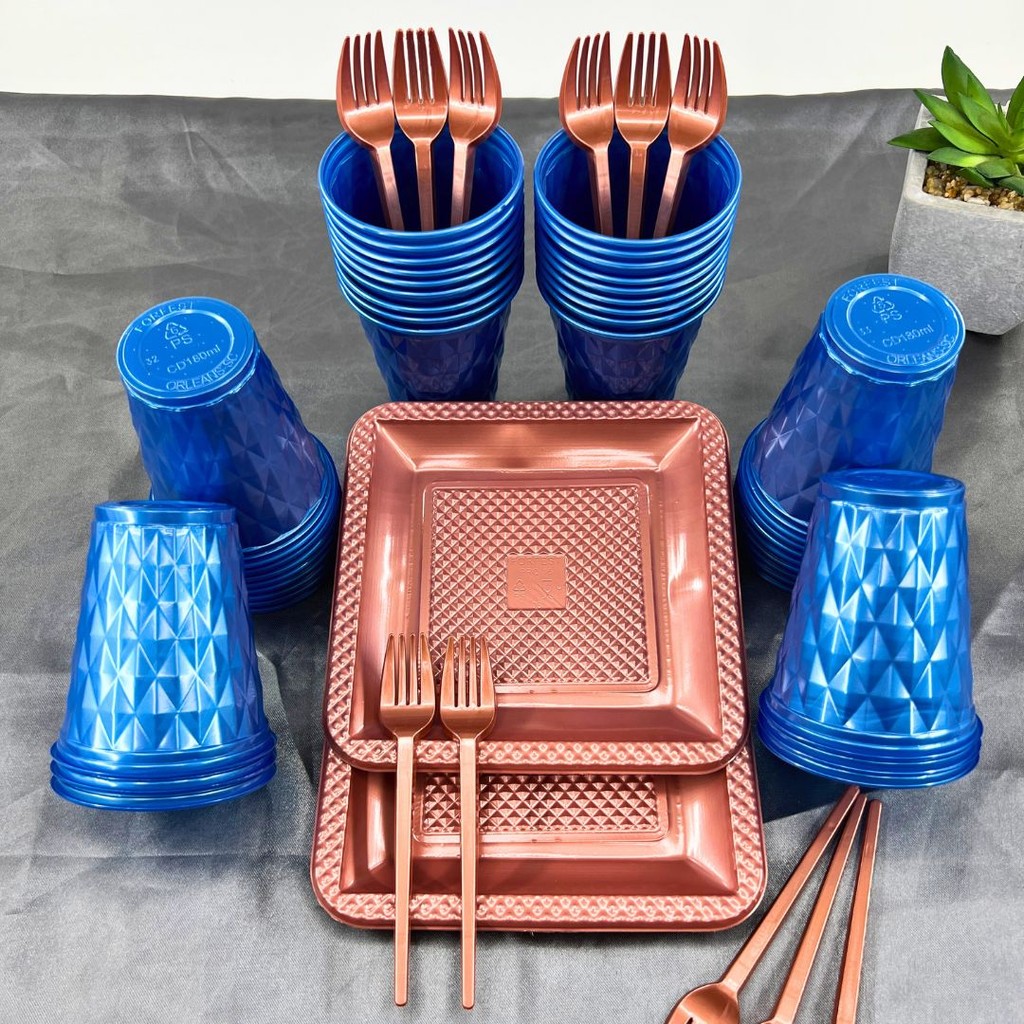 Kit 130 Itens Festa Aniversário Completo Perolado Descartável Luxo Pratinho Copo Garfo P/ 40 Pessoas