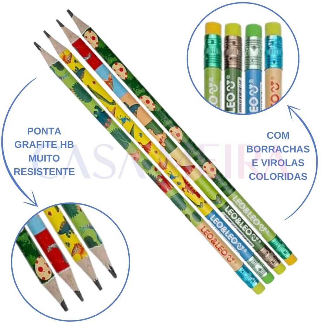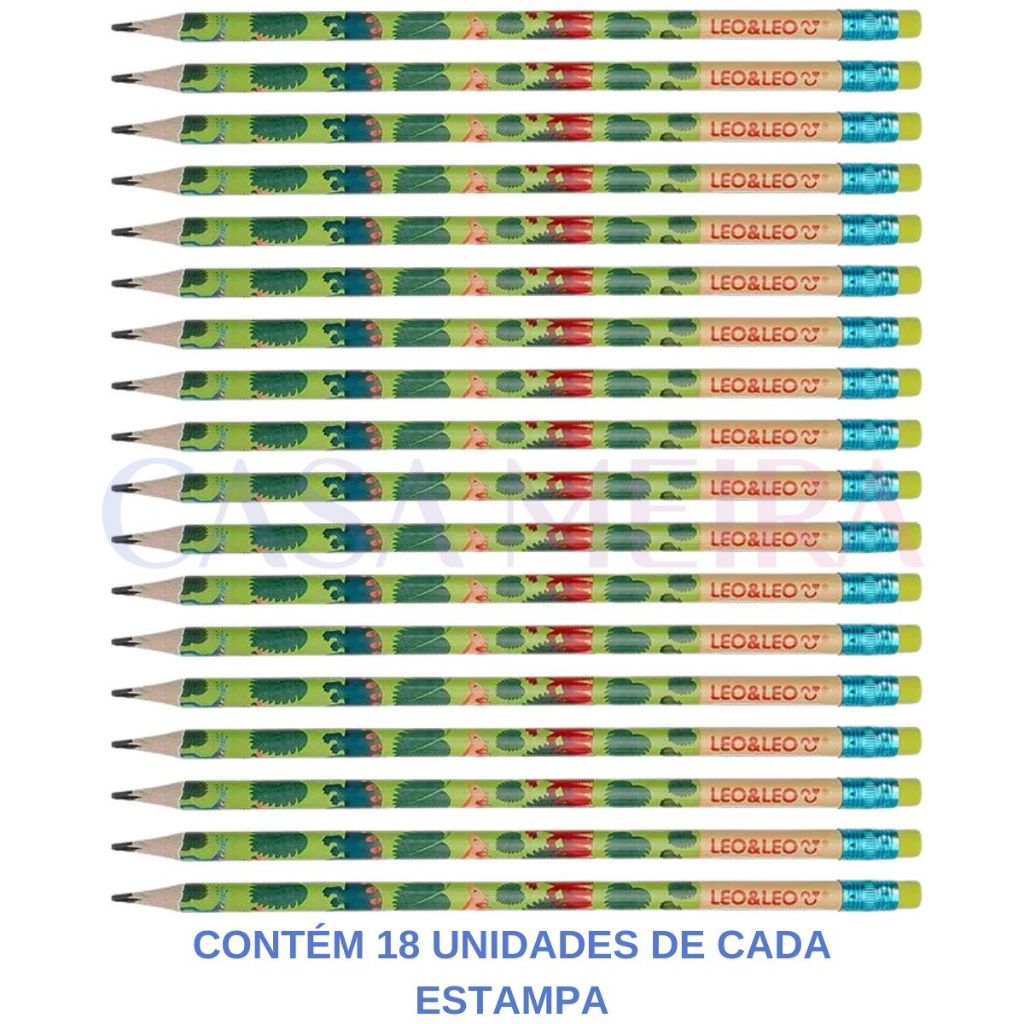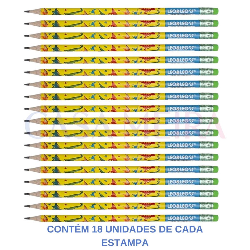 Pote 72 Lápis De Escrever Dino Hb C/ Borracha Resina LeoeLeo Escolar Escritorio Atacado Personagens