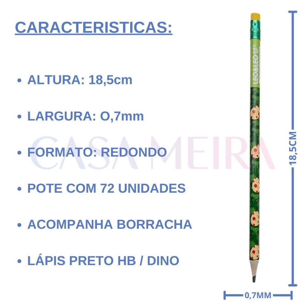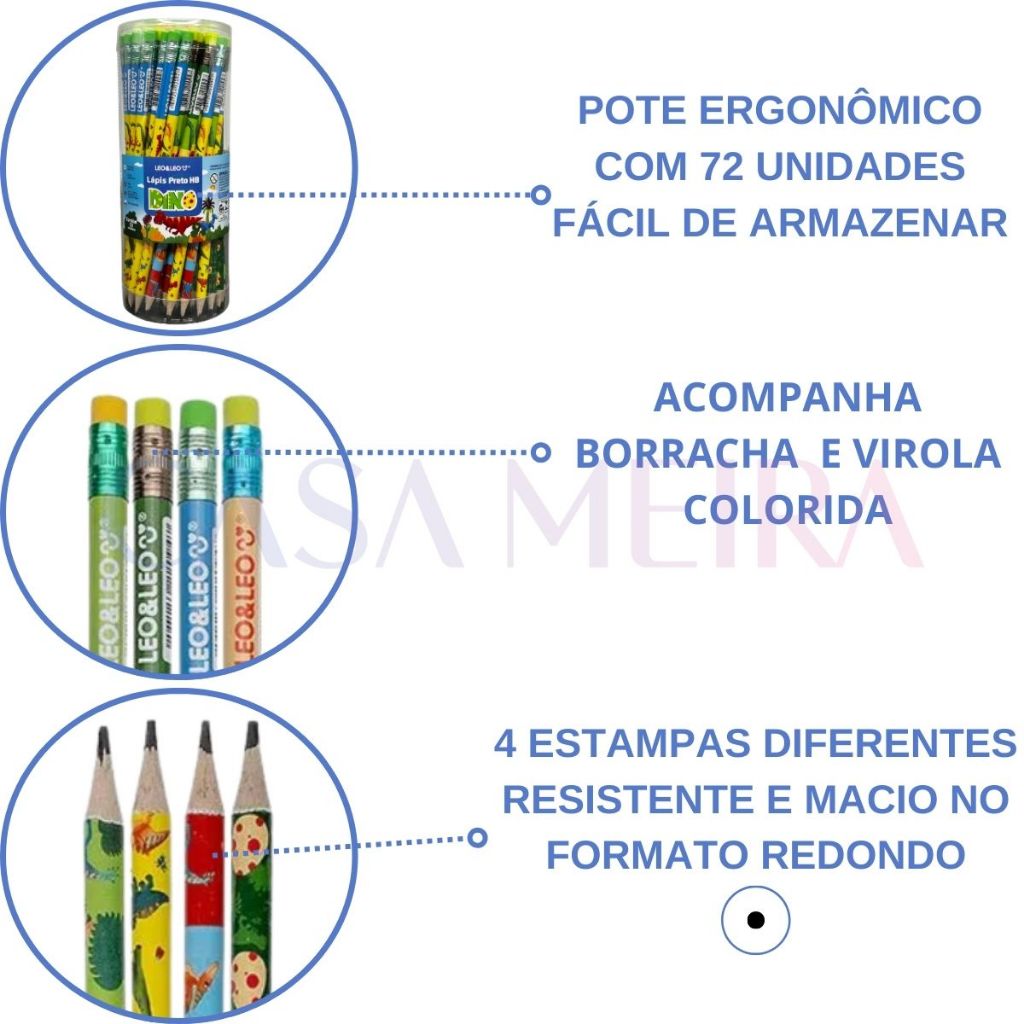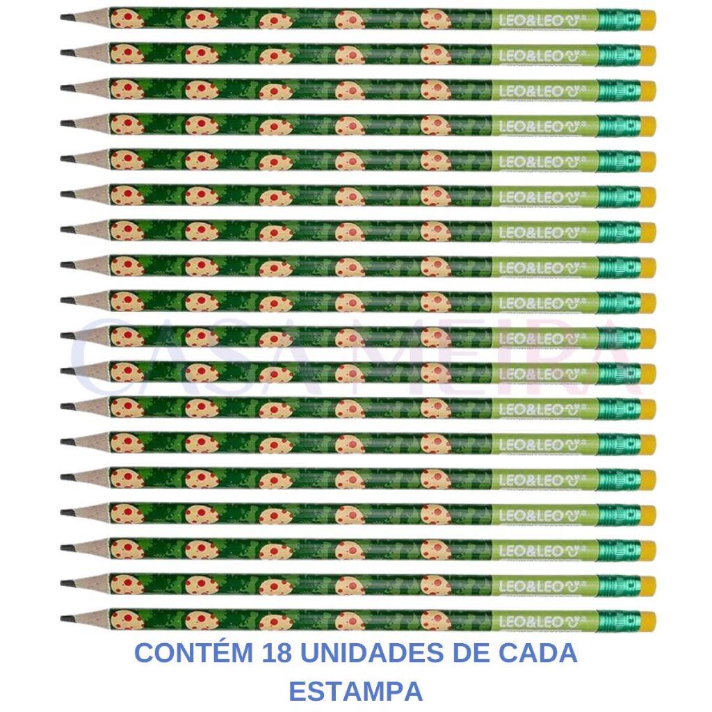 Pote 72 Lápis De Escrever Dino Hb C/ Borracha Resina LeoeLeo Escolar Escritorio Atacado Personagens