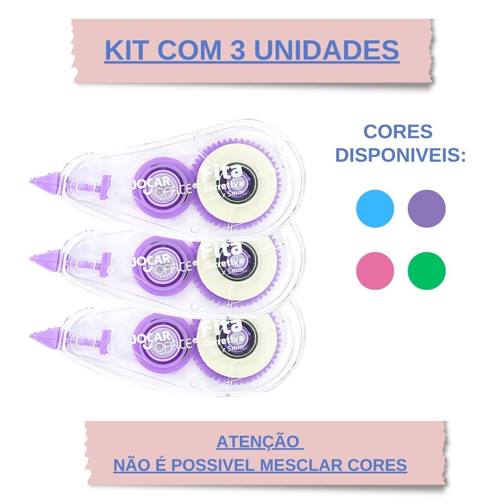 Corretivo Fita Adesiva 6 Metros Jocar Office KIT PROMOCIONAL
