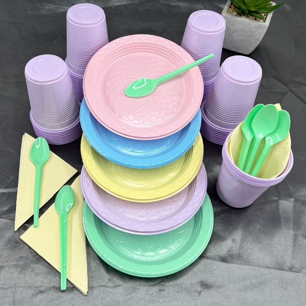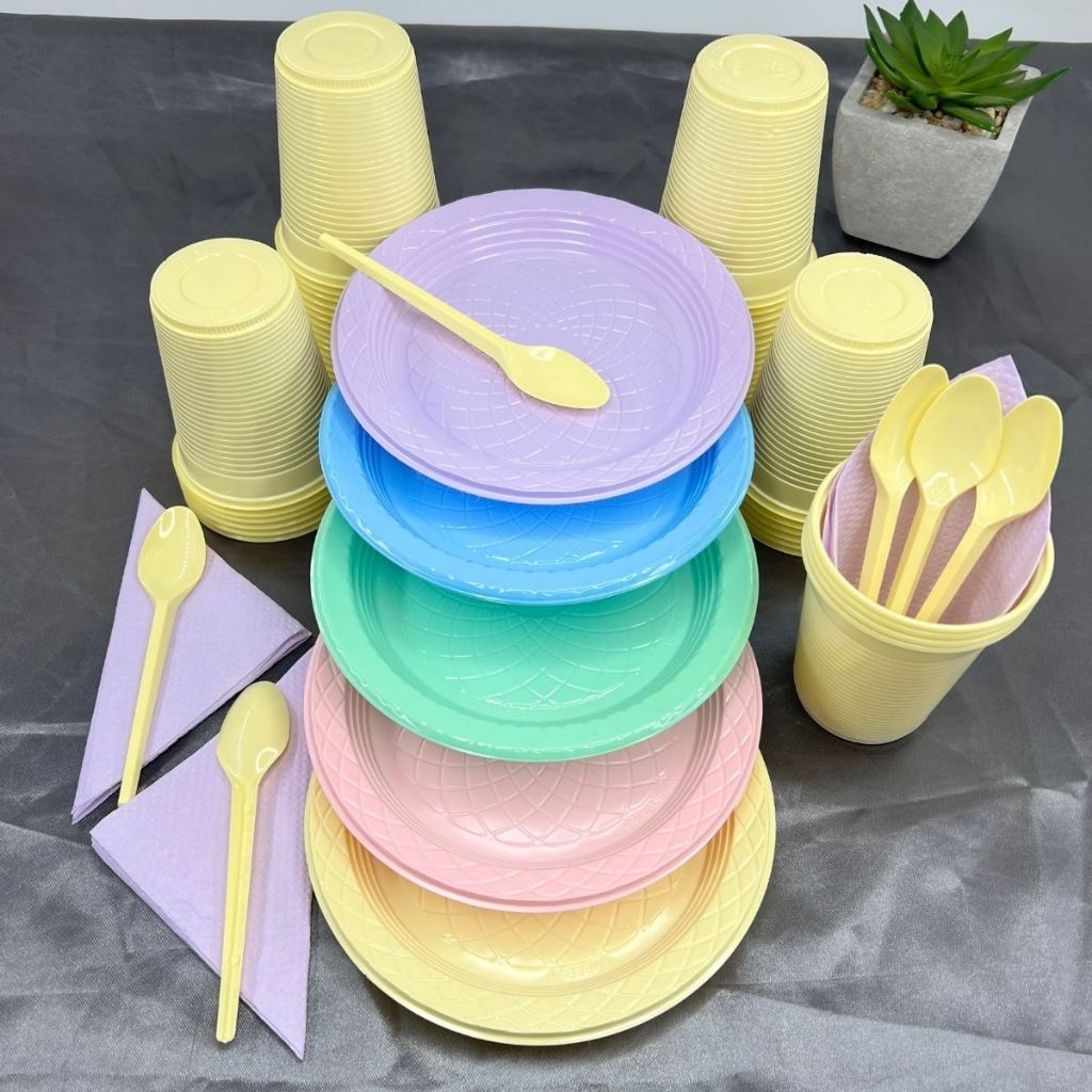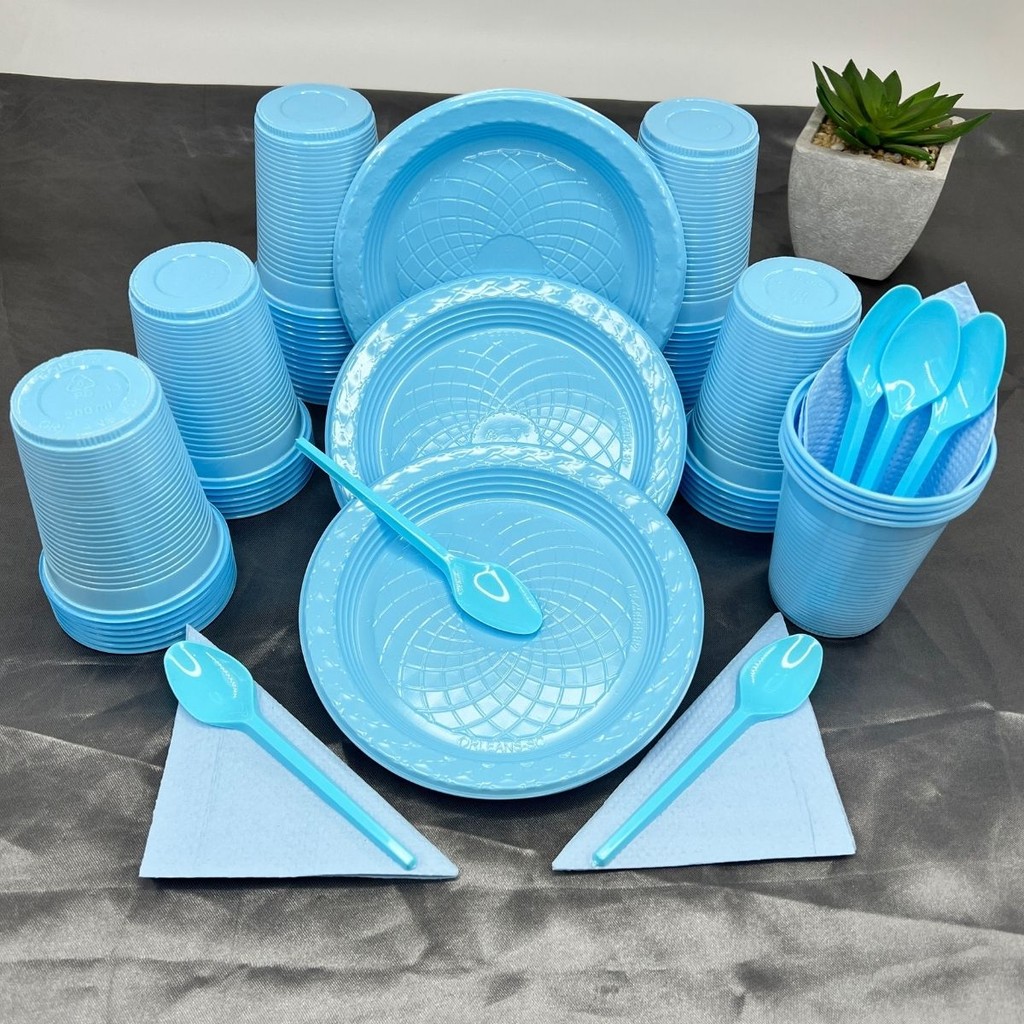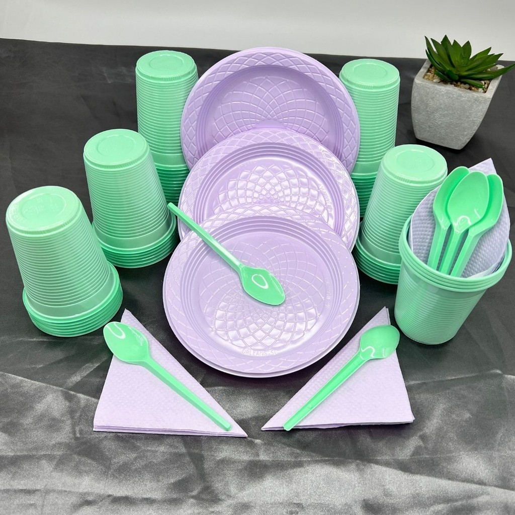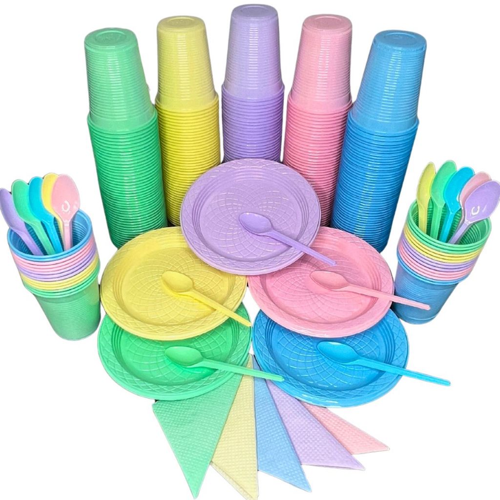 Kit 200 Itens Festa Aniversário Completo Candy Pastel Descartável Pratinho Copo Colher Guardanapo