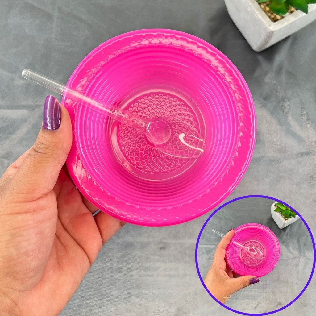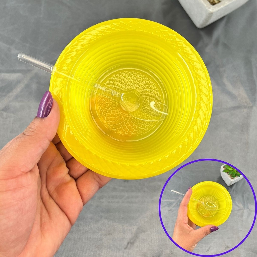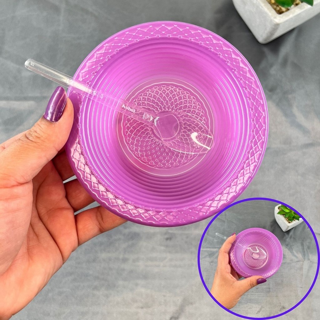 Kit 50 Prato Descartável Fundo Colorido Cumbuca 12cm + Colher 50 Cristal Petisco Festa Bolo Aniversario Milho