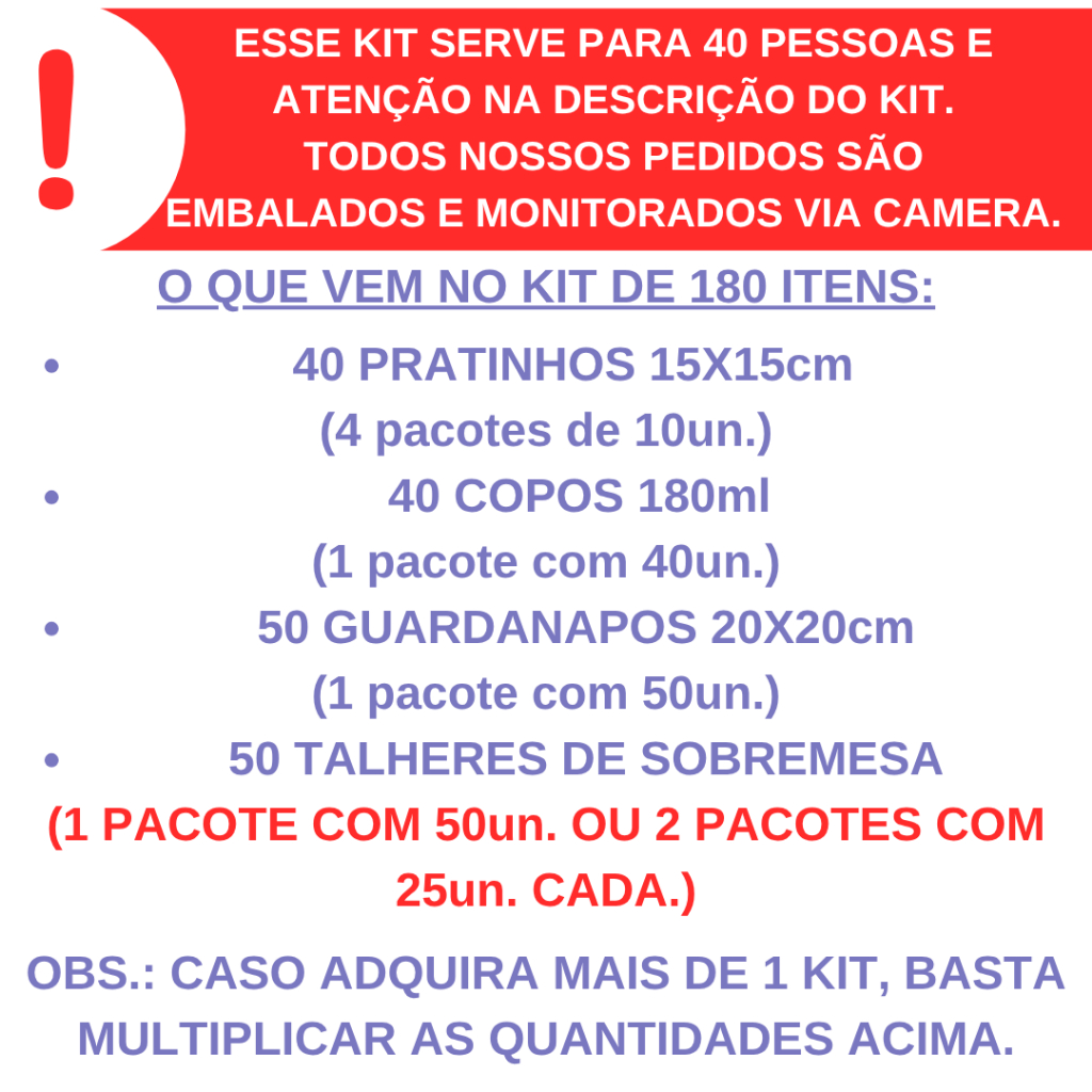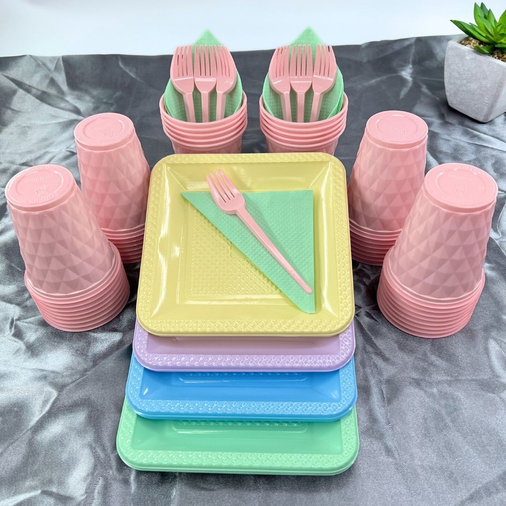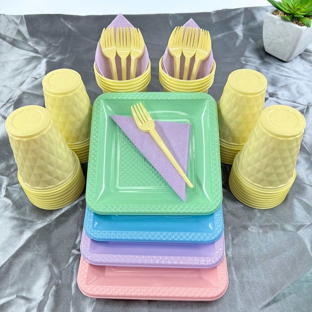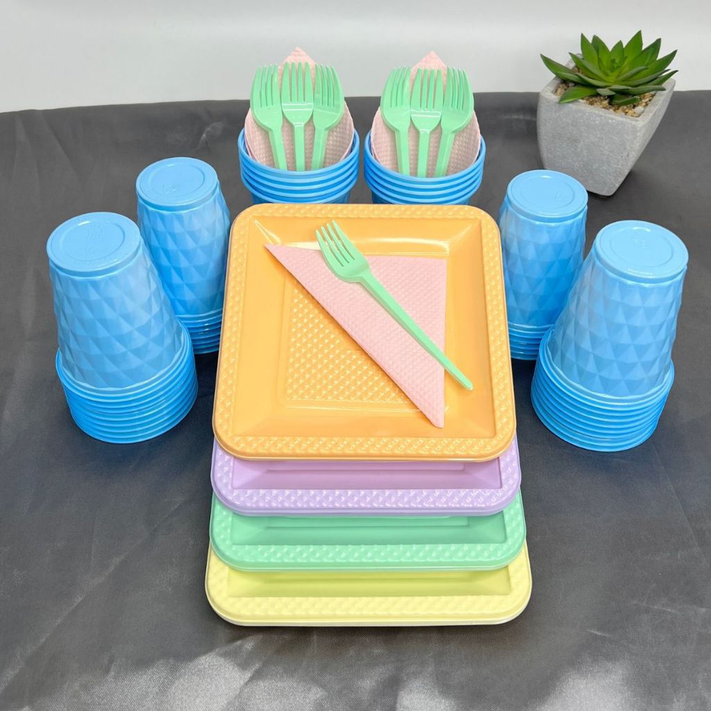 Kit 180 Itens Festa Aniversário Completo Premium Candy Descartável Prato Copo Garfo Guardanapo Cor Pastel P/40 Pessoas