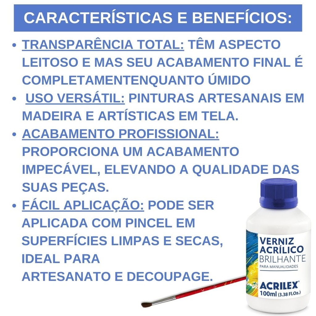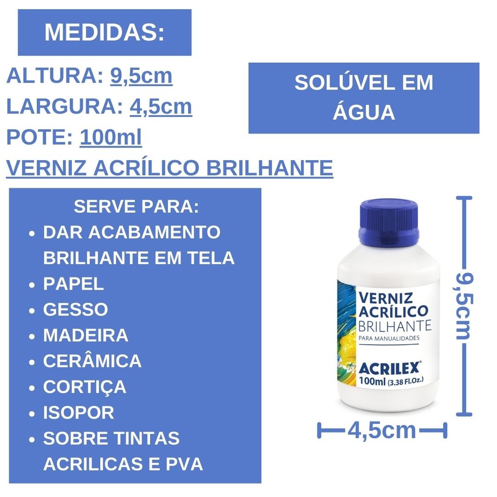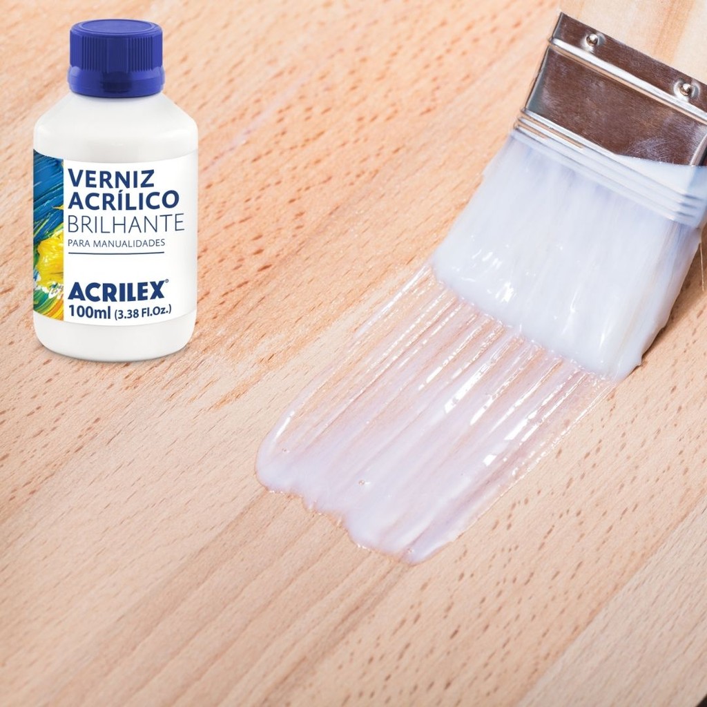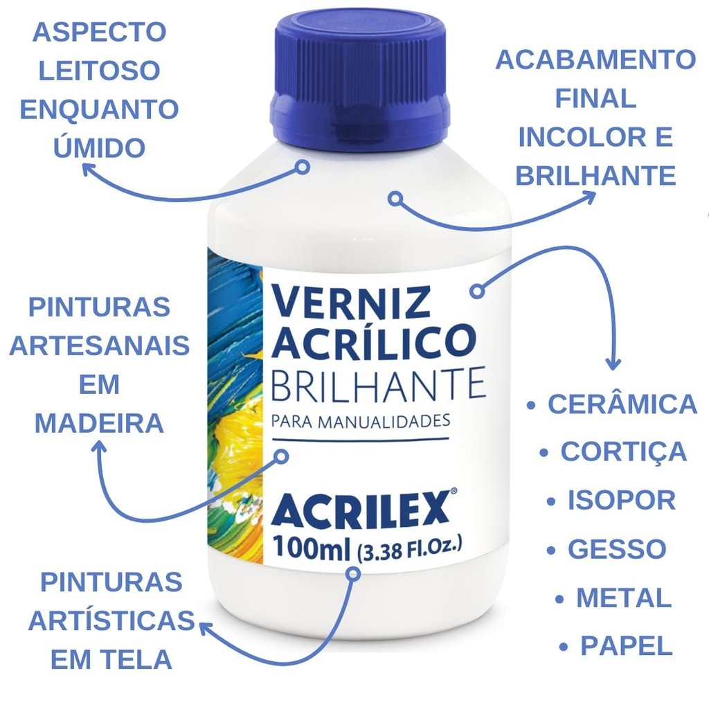 Verniz Acrílico Brilhante 100ml Incolor Brilho Intenso E Proteção Duradoura P/ Madeira Tela Papel Gesso