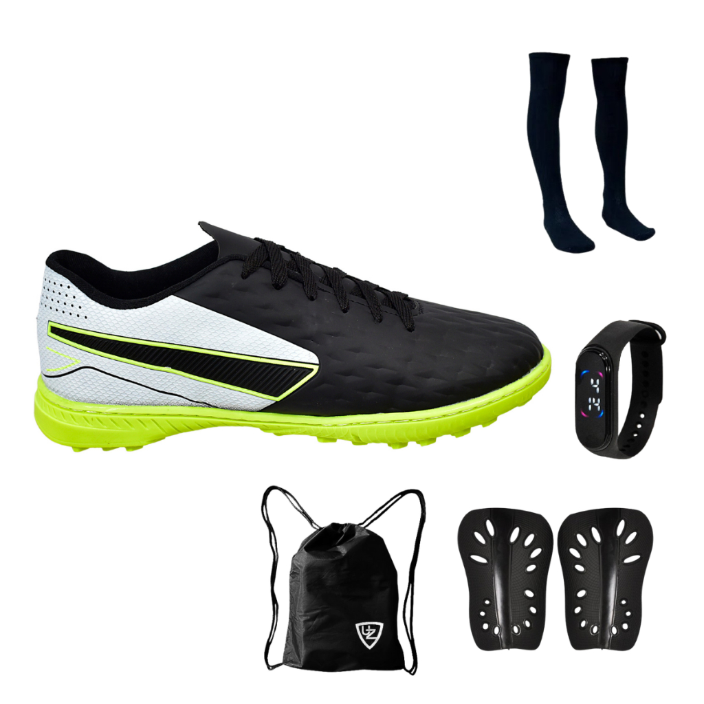 Chuteira Society Impactor Adulto Uzze + Meião Relógio Mochila Caneleira