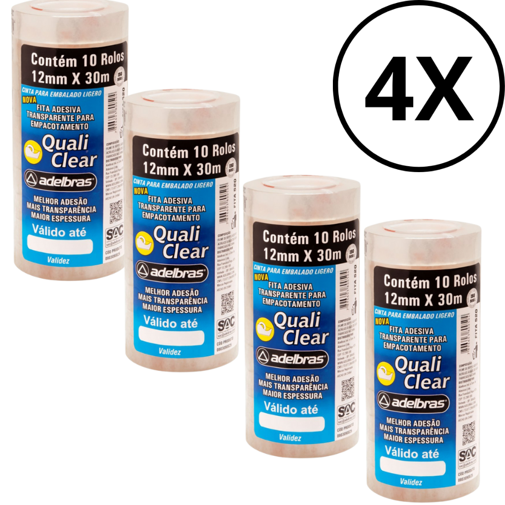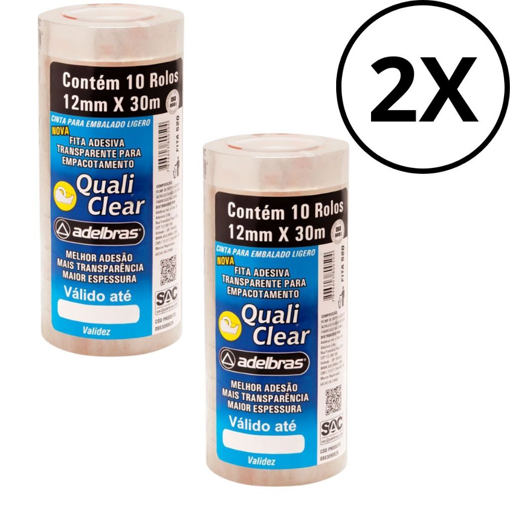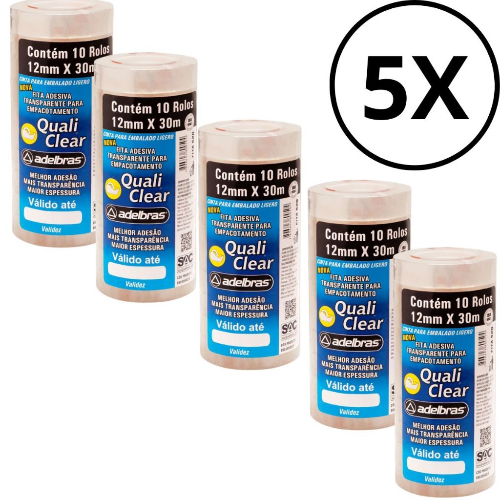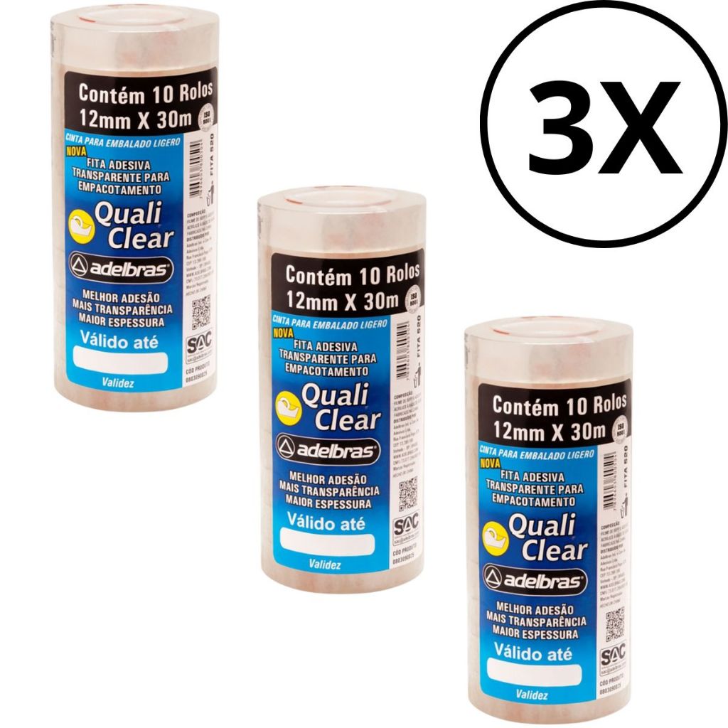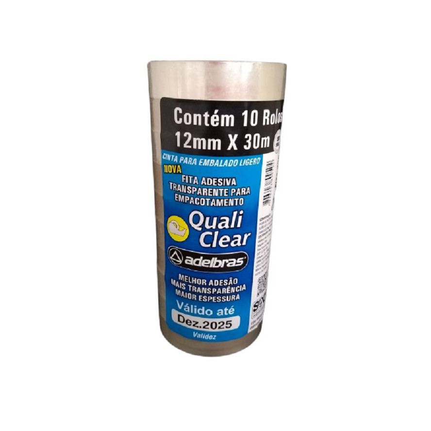 Fita adesiva Quali Clear 12mmx30m Transparente Adelbras Pacote C/ 10 Unidades