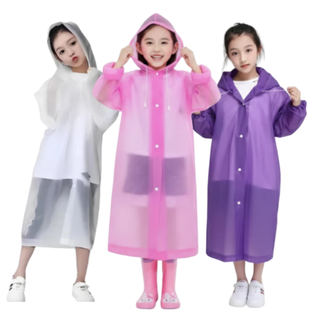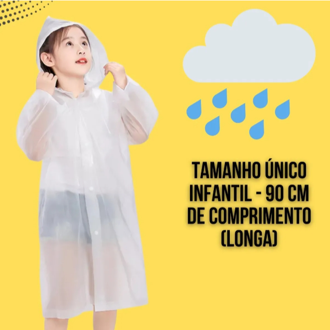 Capa De Chuva Infantil Com Capuz Unissex Impermeável Transparente Tamanho Único